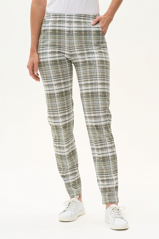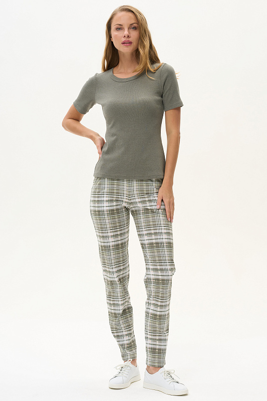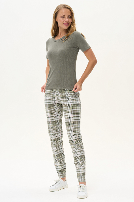 Длинные брюки из кулирки качества ПЕ 150 гр. Модель комфортного прилегания, немного зауженная к низу, отрезной пояс с эластичной лентой внутри, фигурные боковые карманы. Комфортная модель для дома и отдыха. Длина по боковому шву в 44р - 102 см. Рост модели 175 см.