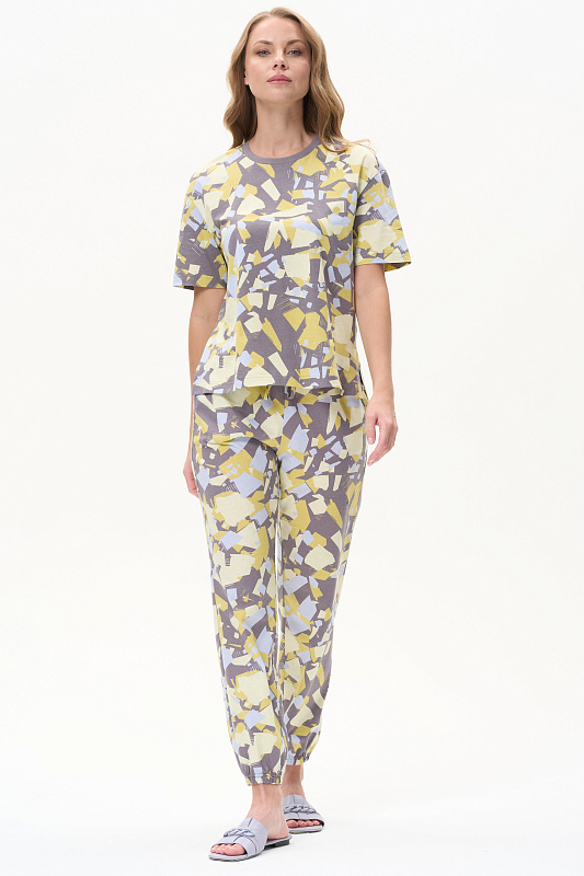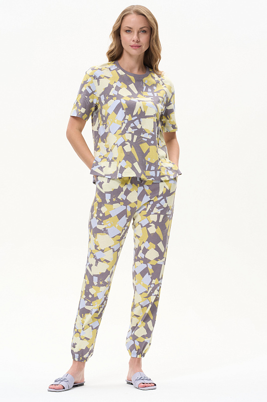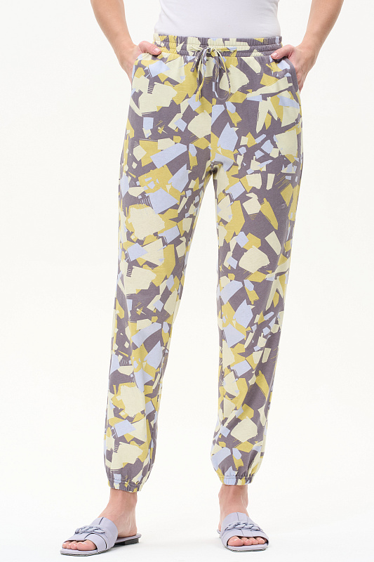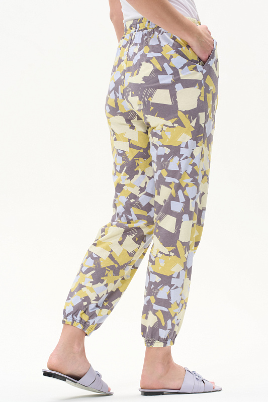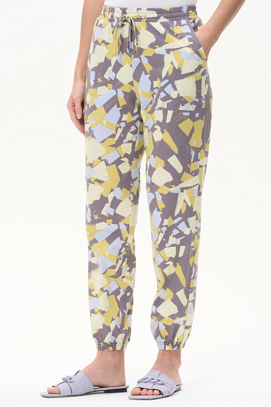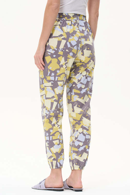 Длинные брюки из кулирки качества ПЕ 150 гр. Модель с фигурными карманами, цельнокроенный пояс с эластичной лентой внутри, завязки для регулировки посадки, по низу на мягкой резинке. Комфортная, лёгкая модель на жаркие дни в трендовом силуэте. Рост модели 175 см
