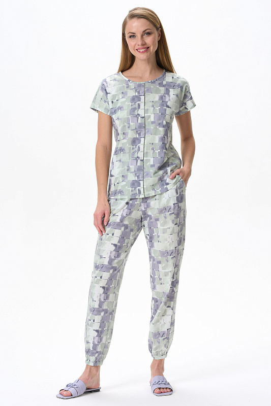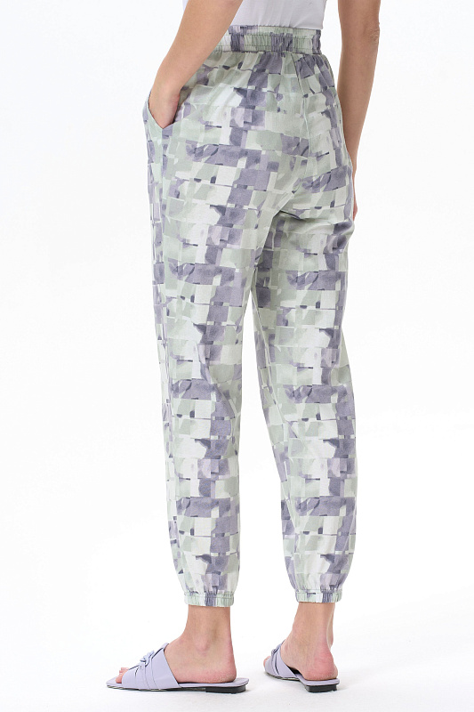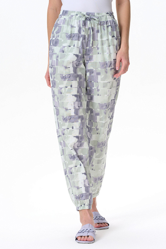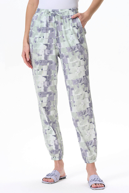 Длинные брюки из хлопкового трикотажного полотна с карманами. Пояс и цельнокроенные манжеты по низу брюк с эластичной тесьмой внутри. Рост модели на фото 177см.