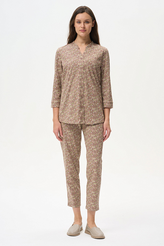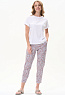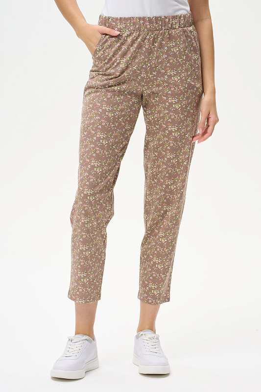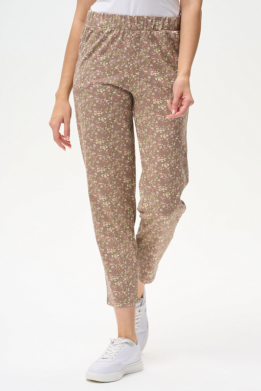 Универсальные брюки, длиной 7/8 из хлопкового полотна. Пояс с эластичной лентой, два фигурных боковых кармана. Длина по боковому шву (без учета пояса) в 44 размере 87см. Рост модели на фото 178 см.
