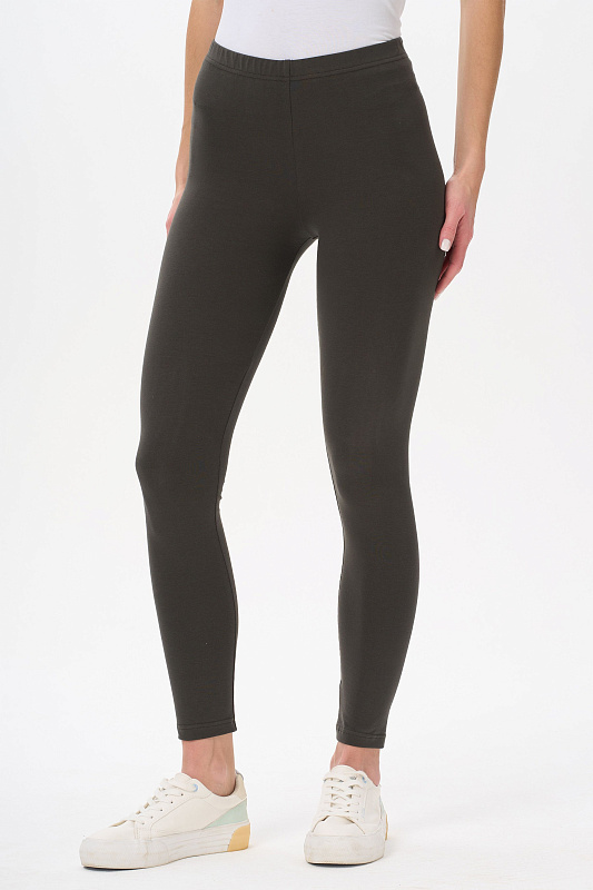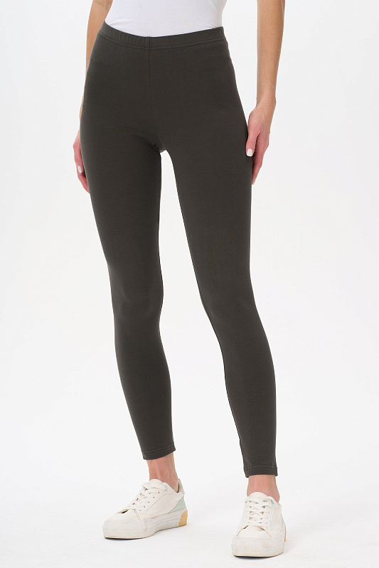 Комфортные облегающие леггинсы из хлопкового трикотажного полотна с эластаном. Пояс с эластичной лентой внутри. Рост модели на фото 177см.