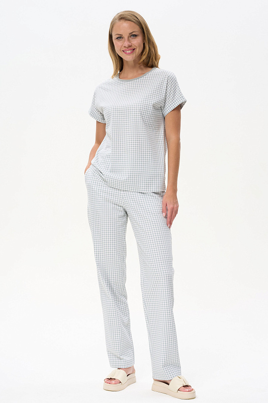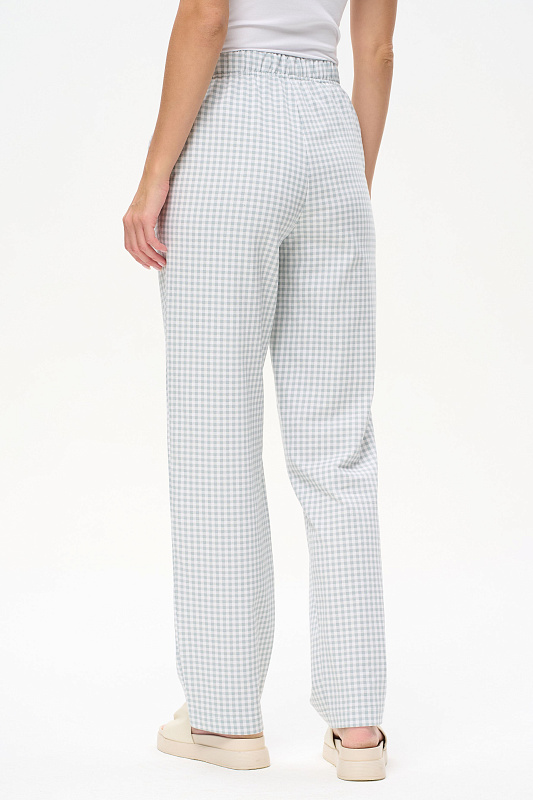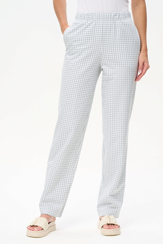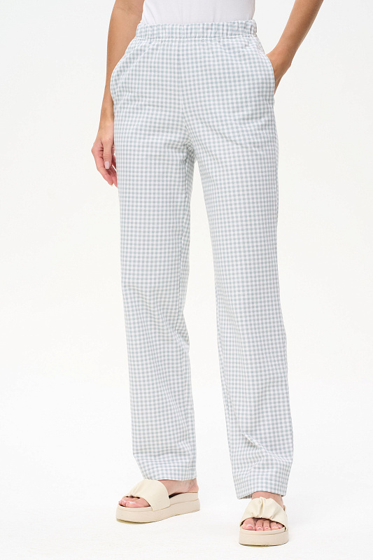 Прямые брюки из футера 2х-нитки с начесом с карманами, пояс с эластичной лентой внутри. Длина по боковому шву (с поясом) в 44 размере 110 см. Рост модели на фото 178см.