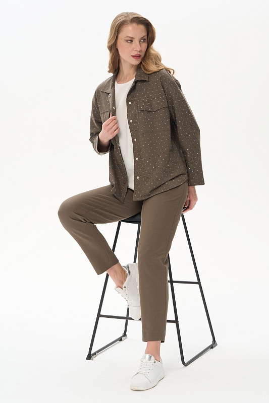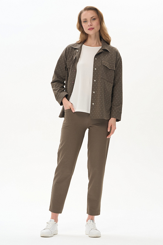 Укороченные, зауженные брюки из джинскота 240 гр в оттенке Хаки. Модель с комфортным прилеганием, длина регулируется отворотами. Удобные карманы с листочкой, пояс с планкой и эластичной лентой внутри. Универсальная модель для отдыха и путешествий. Рост модели 175 см.