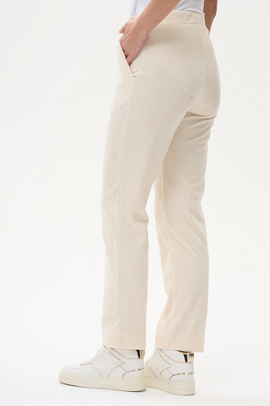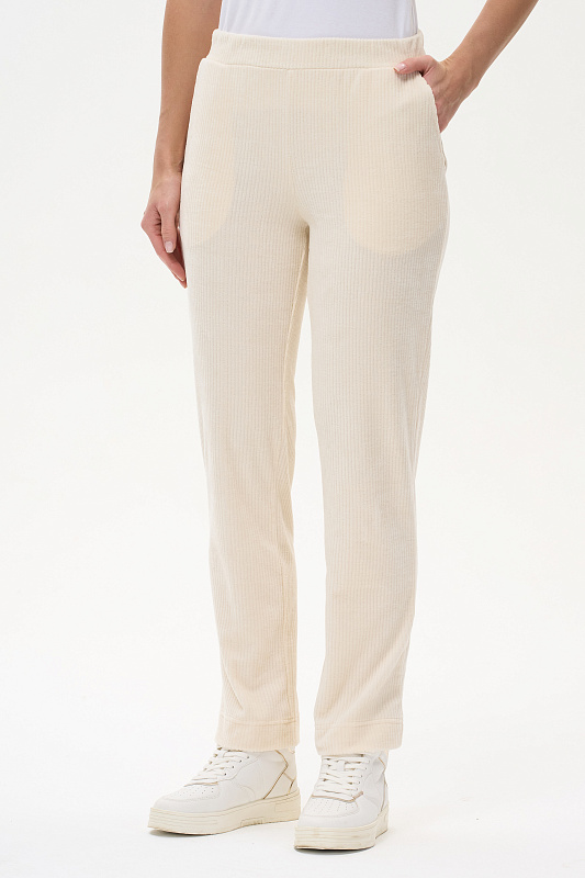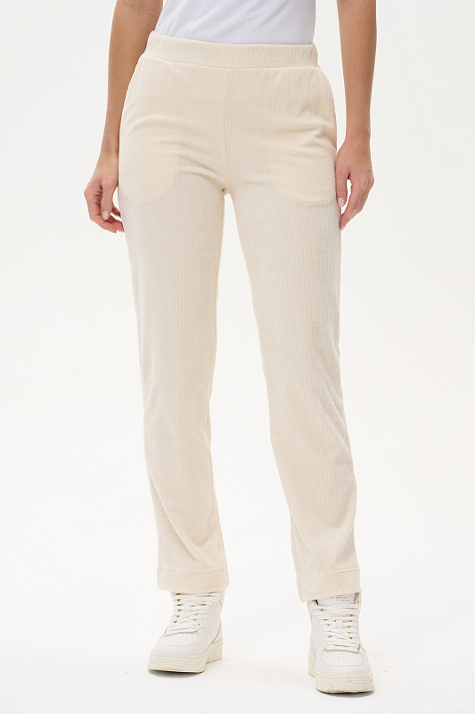 Брюки из трикотажного вельвета 240 гр в элегантном Молочном оттенке. Модель прямого силуэта, неширокие, отрезной пояс с отстрочкой в тон полотна и эластичной лентой внутри, боковые карманы. Мягкий бархатный рубчик делает брюки приятными на ощупь. Прямой крой и средняя посадка подчеркивают универсальность модели, позволяя сочетать брюки с разными верхами, как для дома, так и для повседневных прогулок. Рост модели 175 см.