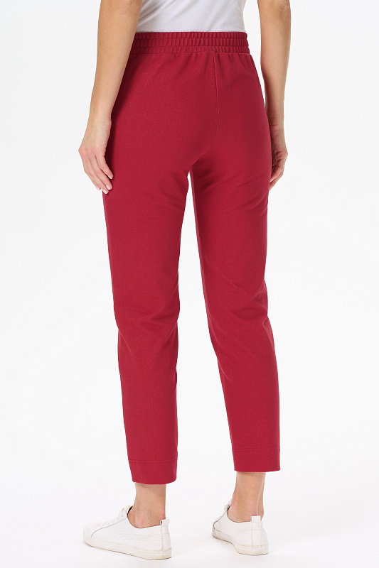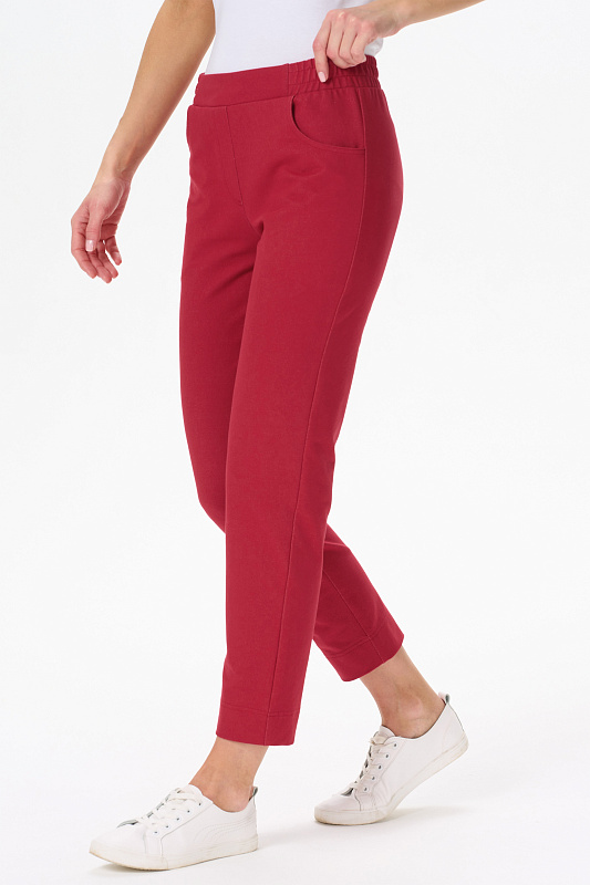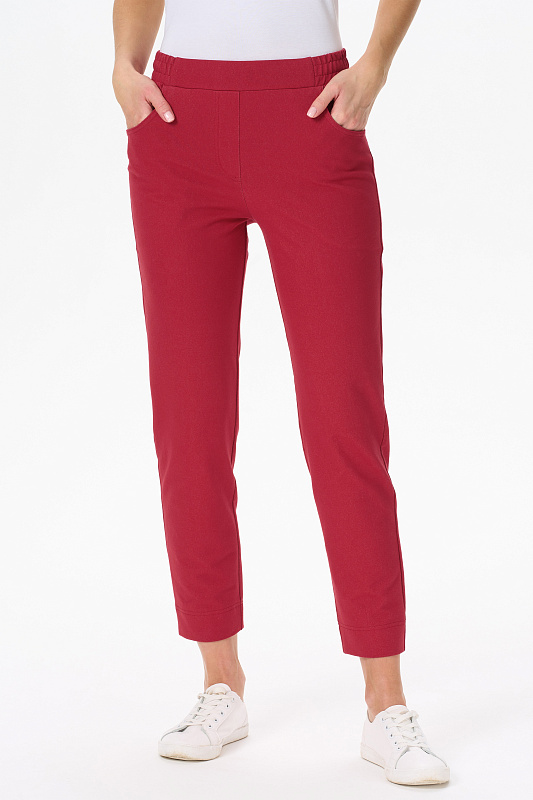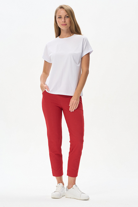 Укороченные брюки из джинскота 240 гр в трендовом Красном оттенке. Модель с комфортным прилеганием и идеальной посадкой. Зауженные к низу, фигурные карманы, пояс с эластичной лентой внутри. Длина регулируется отворотом по низу. Универсальная модель проверенная временем для городских образов, отдыха и путешествий. Длина по боковому шву в 44р - 92 см. Рост модели 175 см.