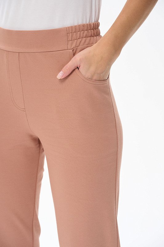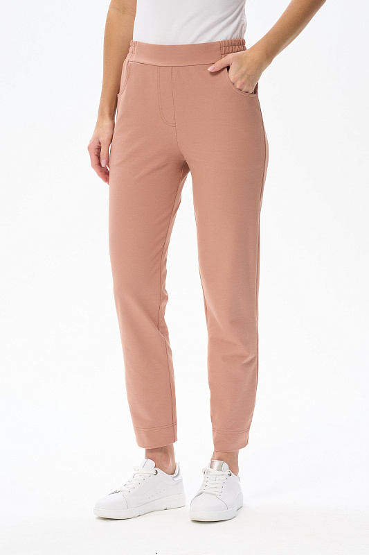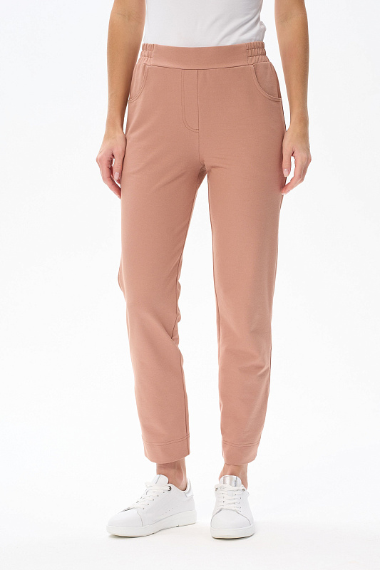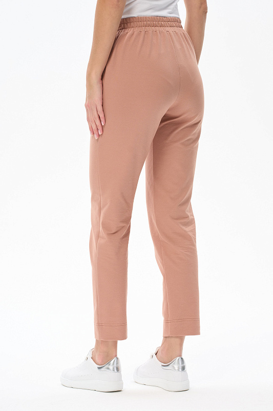 Зауженные брюки с карманами, из хлопкового полотна джинскотт. Пояс с планкой и эластичной лентой внутри. По низу брюк отвороты. Рост модели на фото 177