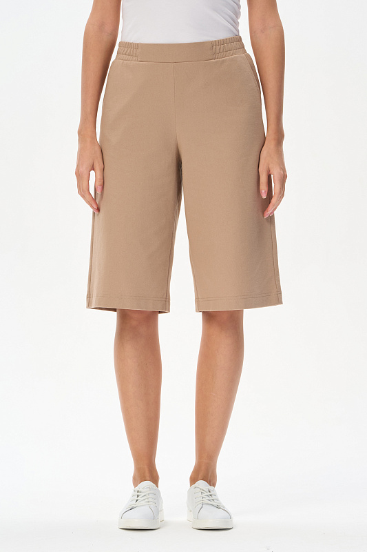 Шорты длиной до колен из джинскота 240 гр в трендовом оттенке Дюны. Модель с классическими карманами, пояс с планкой и эластичной лентой внутри. Комфортная, универсальная модель для городских образов, отдыха и путешествий. Рост модели 175 см.