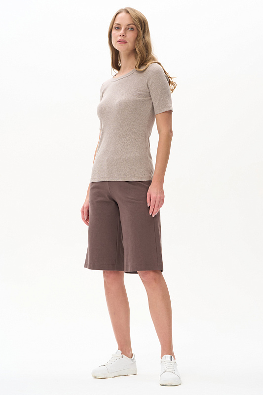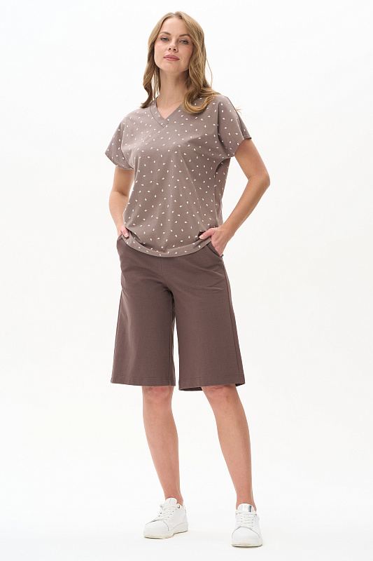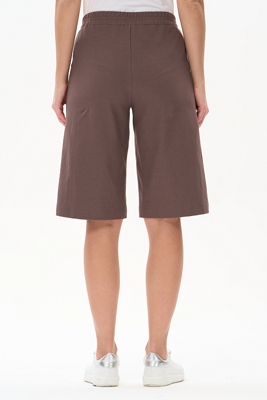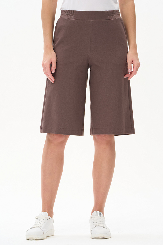 Шорты длиной до колен из джинскота 240 гр в трендовом оттенке Шоколад. Модель с классическими карманами, пояс с планкой и эластичной лентой внутри. Комфортная, универсальная модель для городских образов, отдыха и путешествий. Рост модели 175 см.