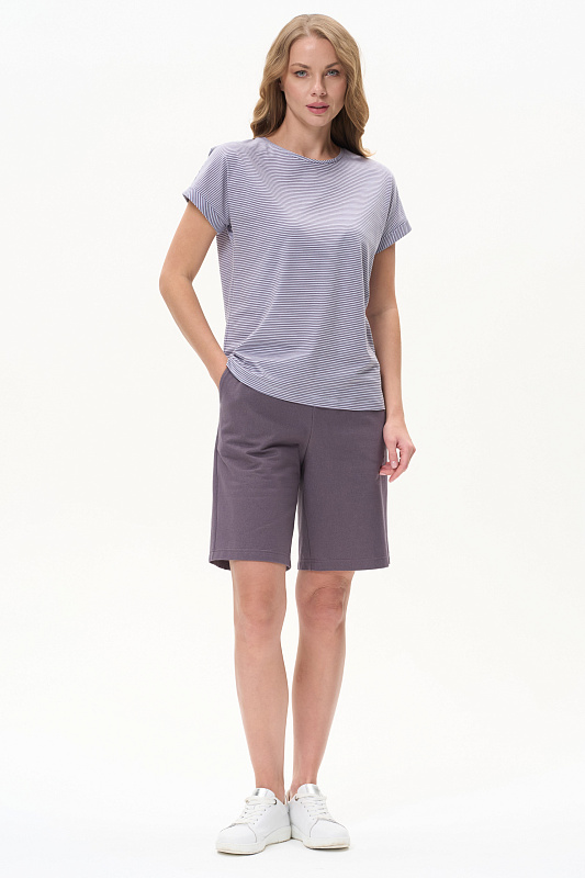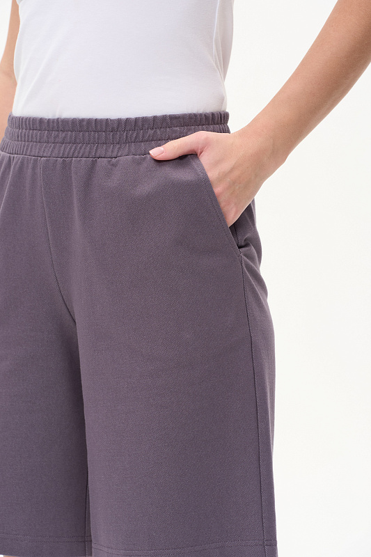 Прямые удлинённые шорты из хлопковой трикотажной джинсы 240 гр. Комфортная посадка, удобные карманы в боковом шве, пояс с эластичной лентой внутри. Отличная модель для повседневных образов. Рост модели 175 см.
