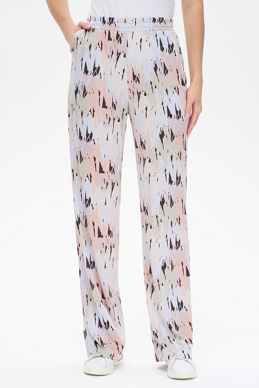 Широкие брюки с карманами из вискозного трикотажного полотна. Пояс с эластичной лентой внутри. Длина брюк по боковому шву в 44 размере - 103см. Рост модели 177.