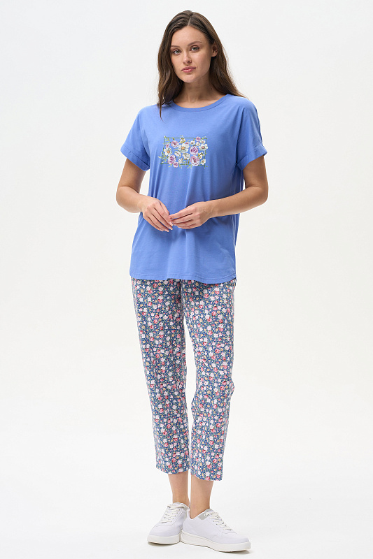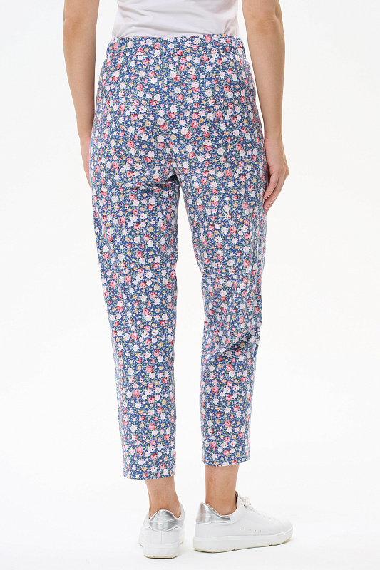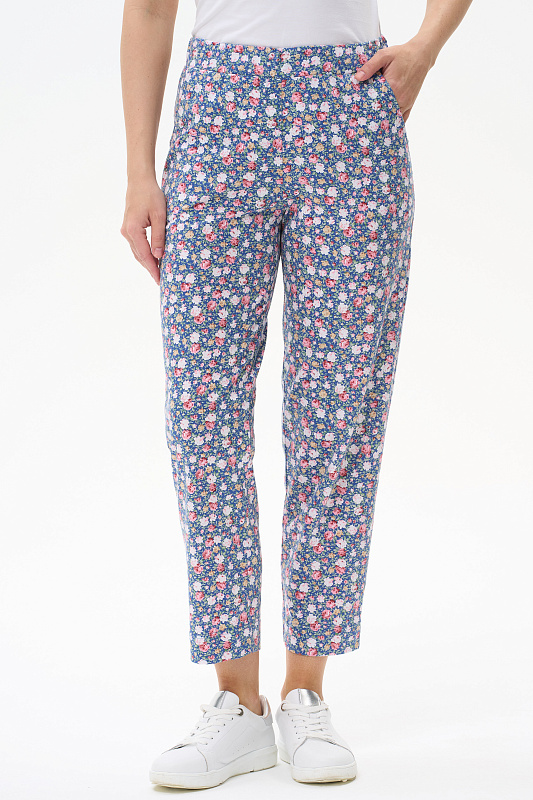 Универсальные брюки, длиной 7/8 из хлопкового полотна. Пояс с эластичной лентой, два фигурных боковых кармана. Рост модели 175 см.