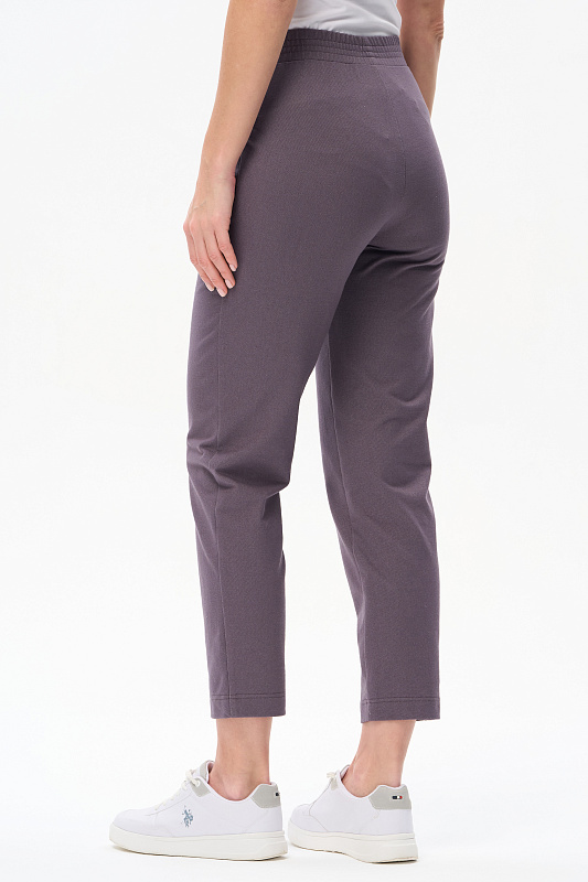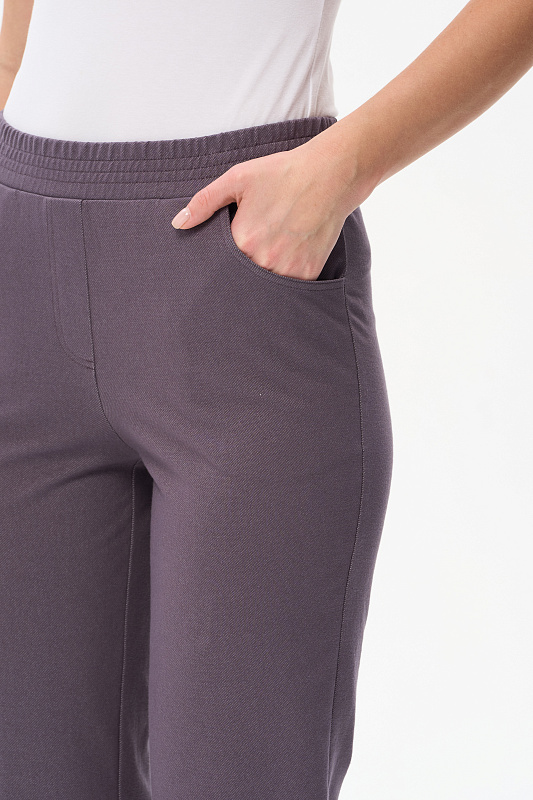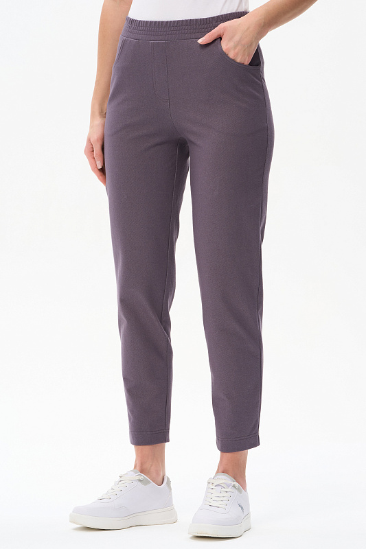 Укороченные, зауженные брюки с фигурными карманами. Пояс с эластичной лентой внутри. Комфортная, универсальная модель для ярких образов. Рост модели 175 см.