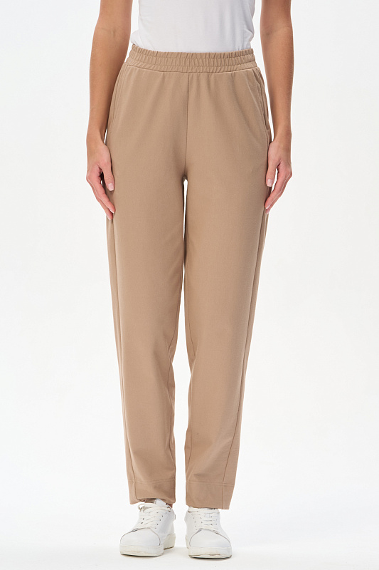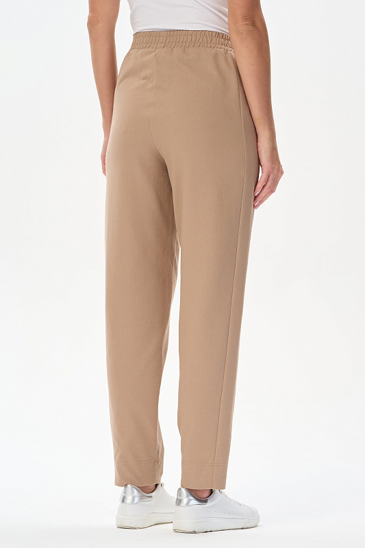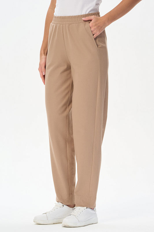 Брюки новой формы с лампасами из джинскота 240 гр в оттенке Дюны. Модель свободная, зауженная к низу, длина регулируется отворотами. Боковой шов немного переведён вперед для удобства входа в карман. Пояс с отстрочками в тон и эластичной лентой внутри. Прекрасная трендовая модель на лето, легко сочетается со всеми верхами коллекции. Длина в 44р - 101 см. Рост модели 175 см.