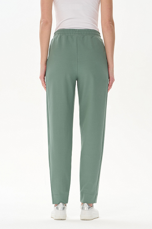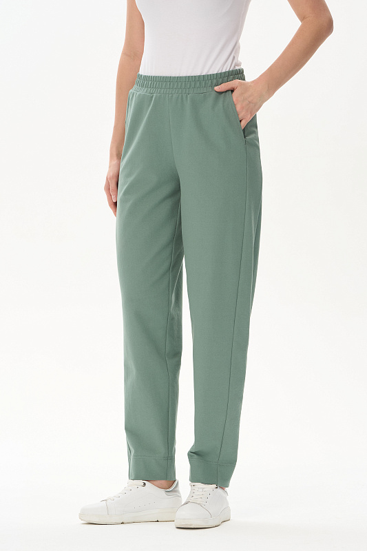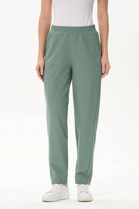 Брюки новой формы с лампасами из джинскота 240 гр в оттенке Полынь. Модель свободная, зауженная к низу, длина регулируется отворотами. Боковой шов немного переведён вперед для удобства входа в карман. Пояс с отстрочками в тон и эластичной лентой внутри. Прекрасная трендовая модель на лето, легко сочетается со всеми верхами коллекции. Длина в 44р - 101 см. Рост модели 175 см.