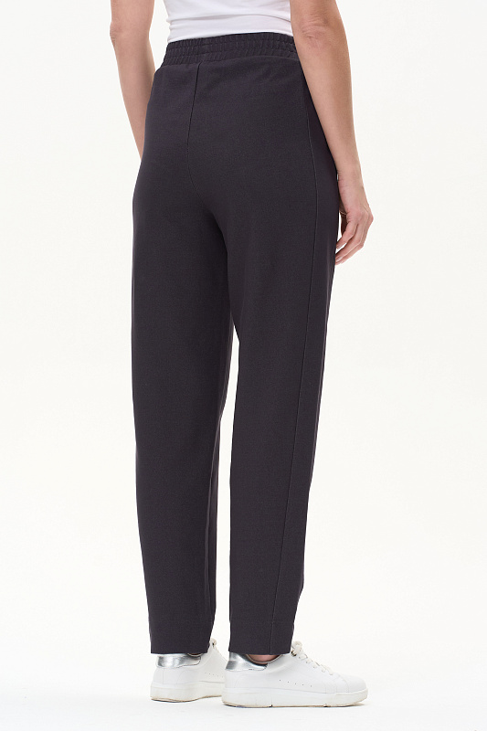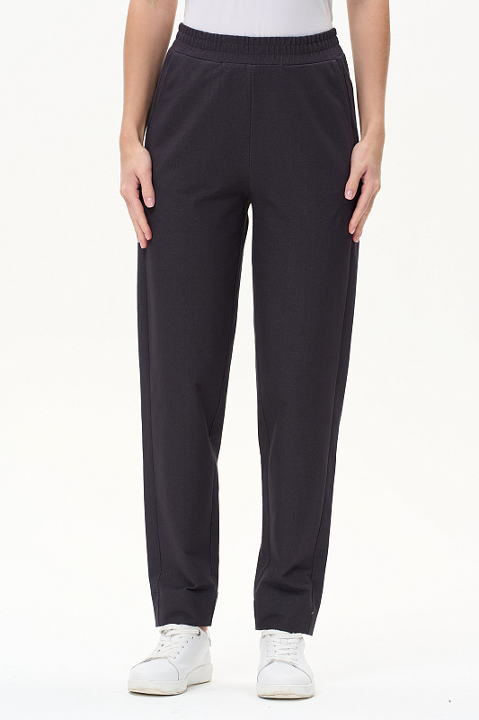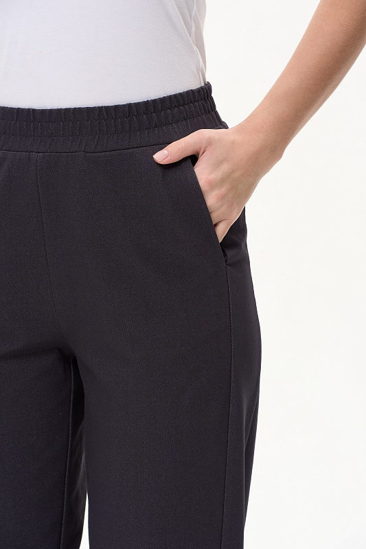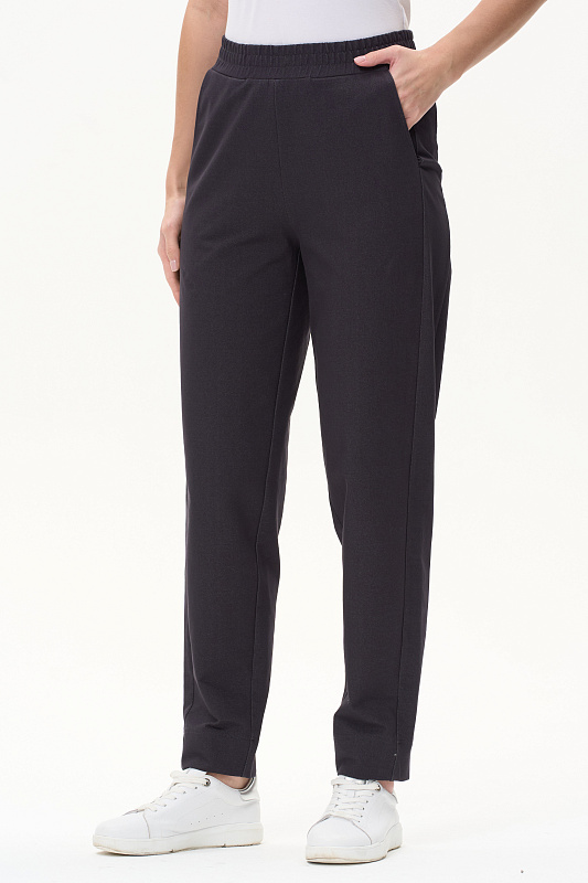 Брюки новой формы с лампасами из джинскота 240 гр в оттенке Фюме. Модель свободная, зауженная к низу, длина регулируется отворотами. Боковой шов немного переведён вперед для удобства входа в карман. Пояс с отстрочками в тон и эластичной лентой внутри. Прекрасная трендовая модель на лето, легко сочетается со всеми верхами коллекции. Длина в 44р - 101 см Рост модели 175 см.