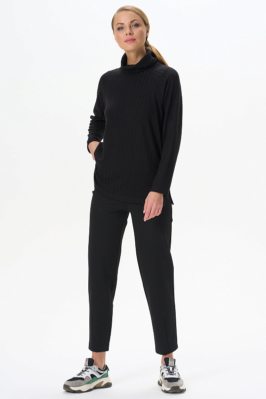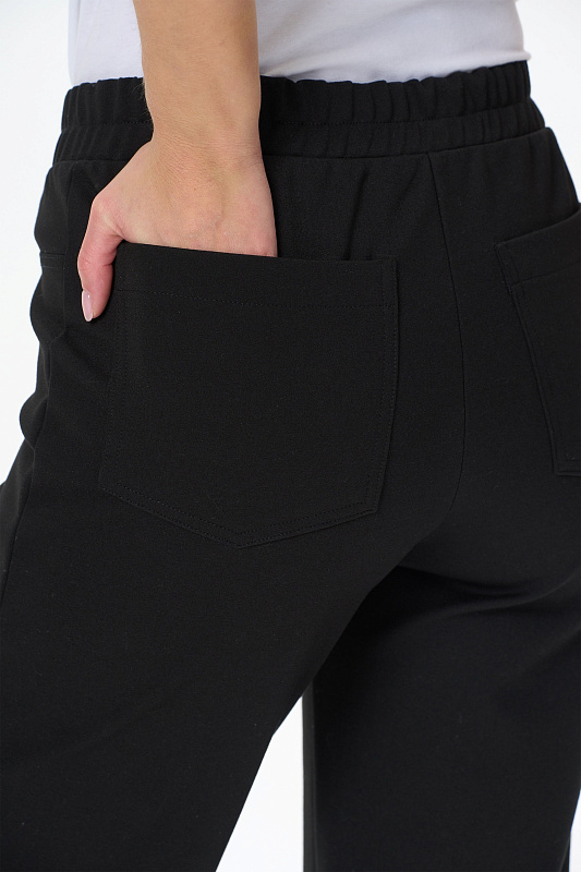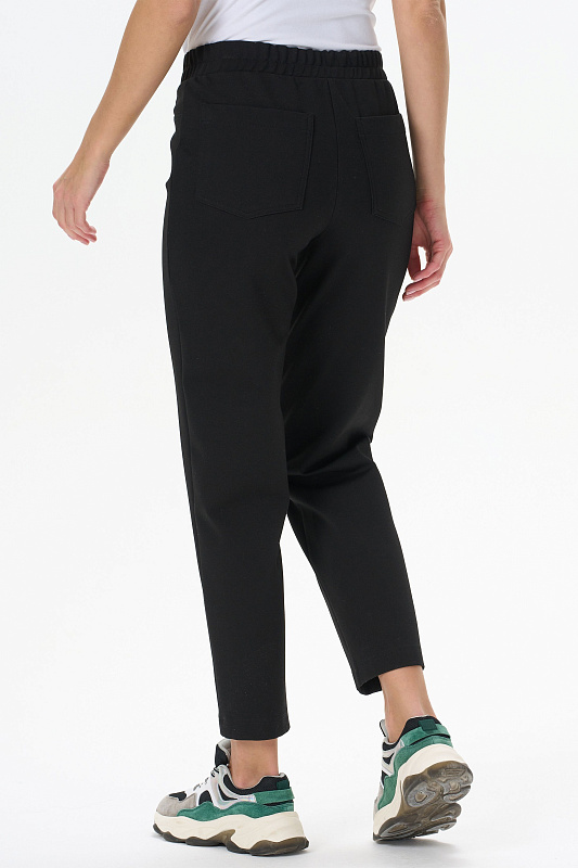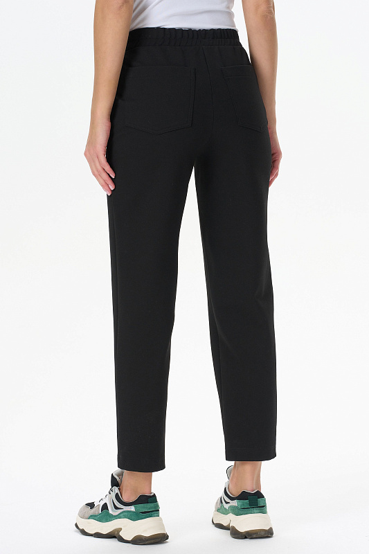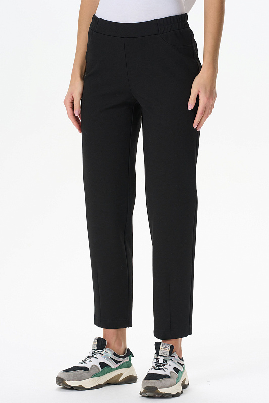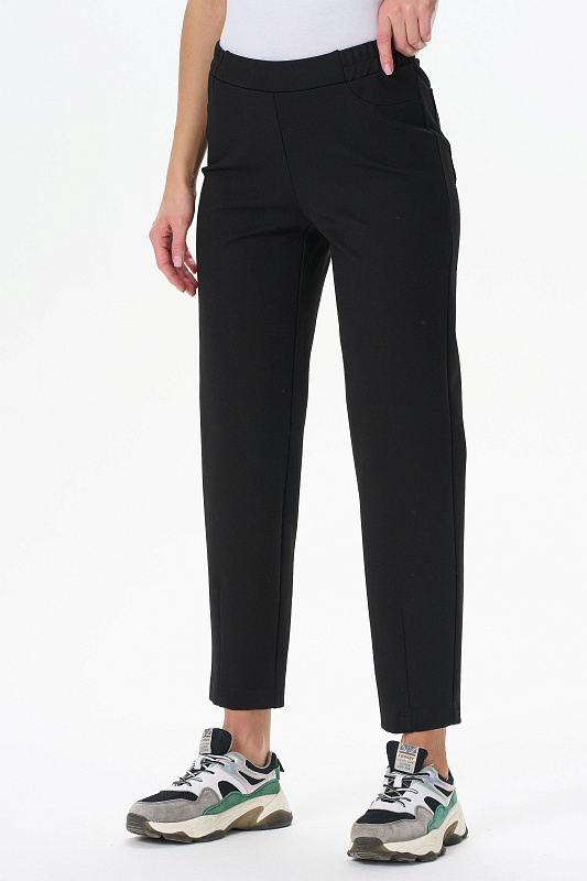 Утепленные зауженные брюки. Выполнены из плотного трикотажного полотна- бистрейч с начесом. Пояс с эластичной лентой внутри. Сзади два накладных кармана. Длина по боковому шву (без пояса) в 44 размере 93см. Рост модели на фото 178 см.