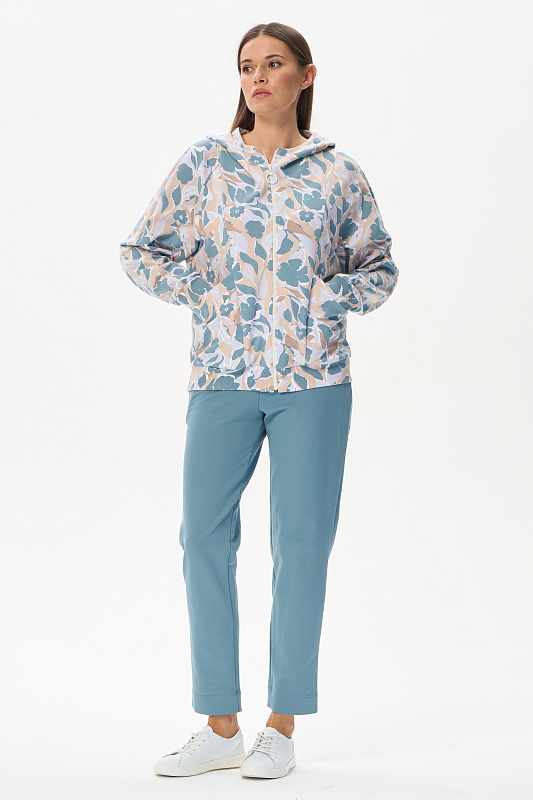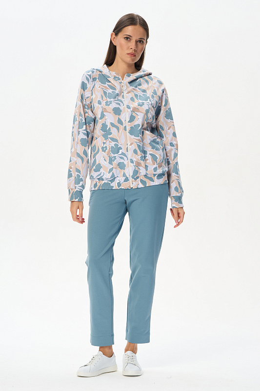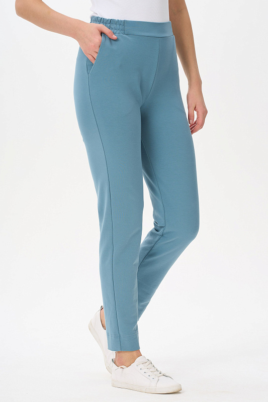 Зауженные брюки с карманами, из хлопкового полотна френчтерри. Пояс с планкой и эластичной лентой внутри. Длина брюк регулируется подворотом. Рост модели 175 см.