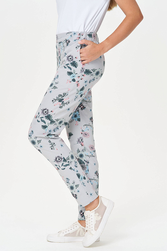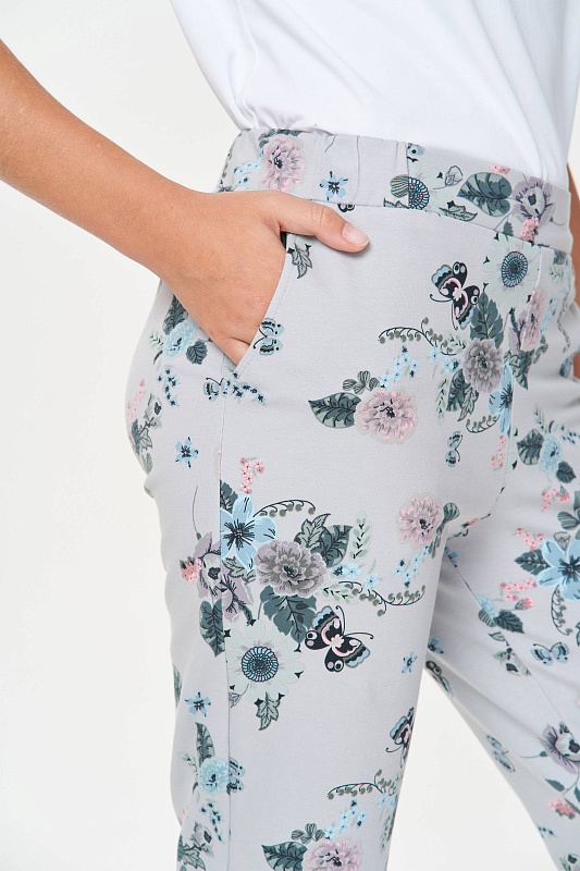 Комфортные брюки с карманами, из хлопкового футера 2х нитки (без начеса). Пояс с планкой и эластичной тесьмой внутри. По низу брюк отвороты. Рост модели на фото 175.