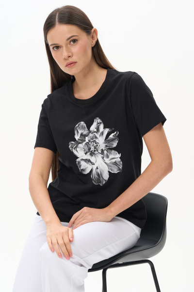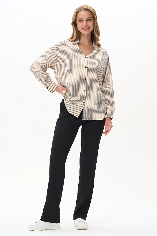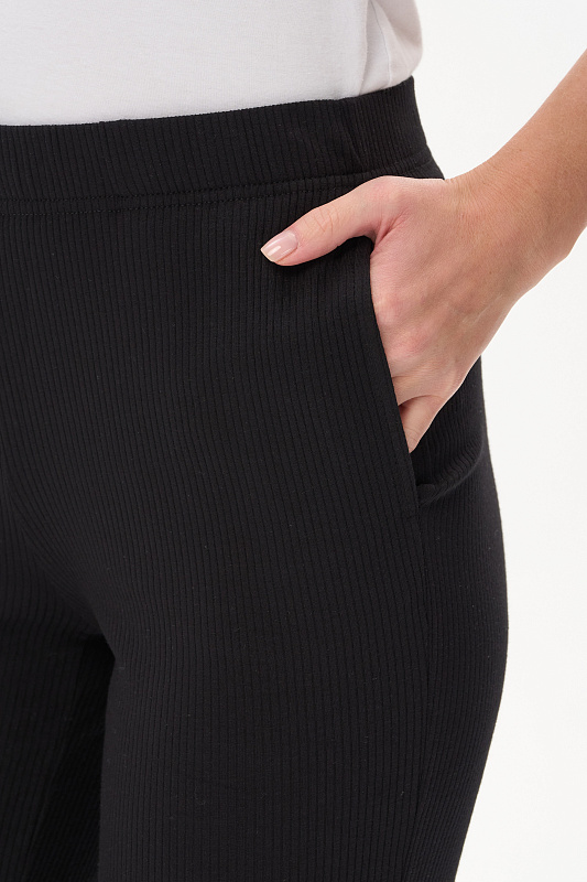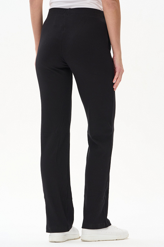 Прямые брюки из фактурного хлопкового полотна с модалом в Глубоком чёрном оттенке. Модель с комфортным прилеганием и идеальной посадкой, пояс с мягкой эластичной лентой внутри. Длина брюк в 44р - 110 см. Рост модели 175 см.