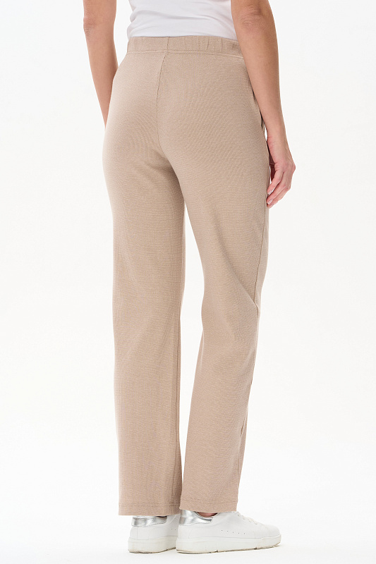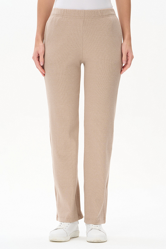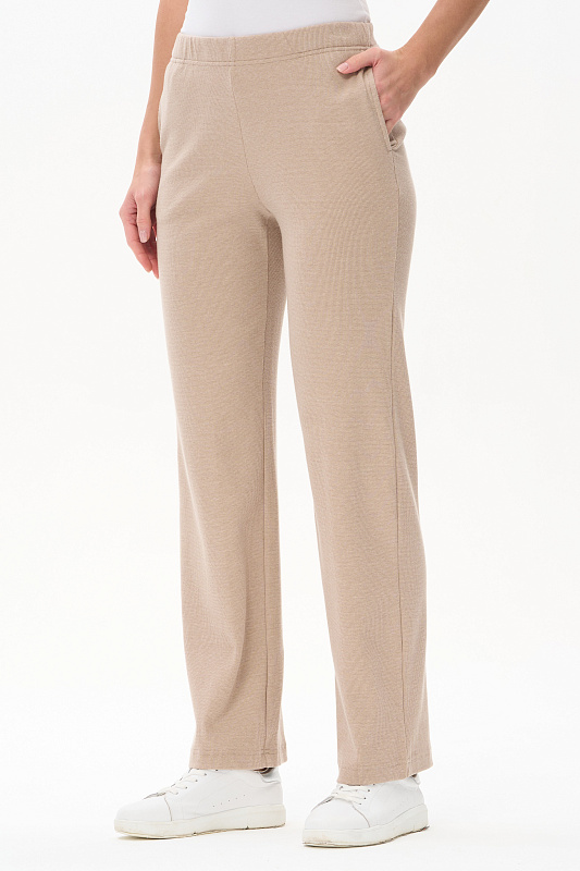 Брюки из меланжевого кашкорсе качества пенье 240 гр в бежевом оттенке. Модель полной длины, карманы в боковом шве, цельнокроеный пояс с эластичной лентой внутри. Идеально сочетаются со всеми верхами коллекции. Рост модели 175 см.