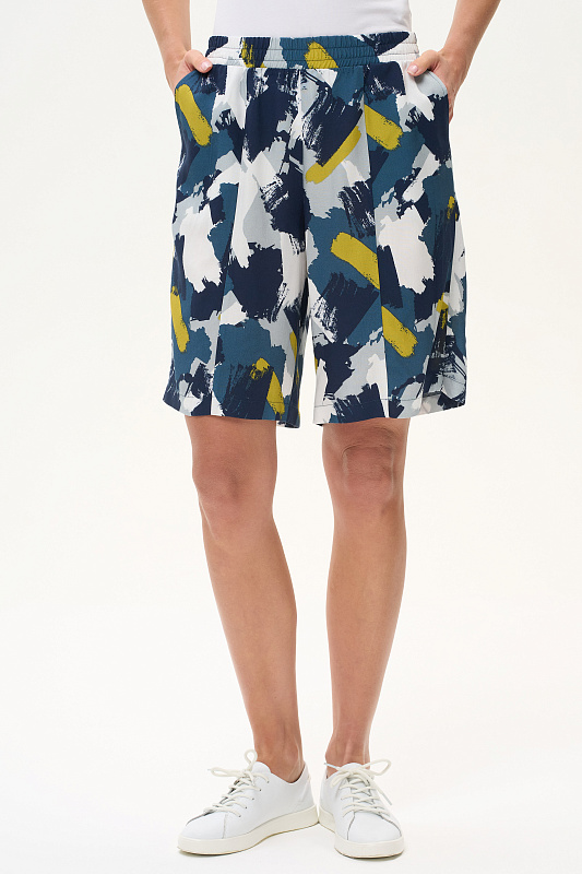 Лёгкие шорты из штапеля 120 гр рисунок Яркая абстракция. Модель свободная, длиной до колен, пояс с эластичной лентой внутри. Стильные свободные летние шорты -отличный вариант для города, отдыха и прогулок. Рост модели 175 см.