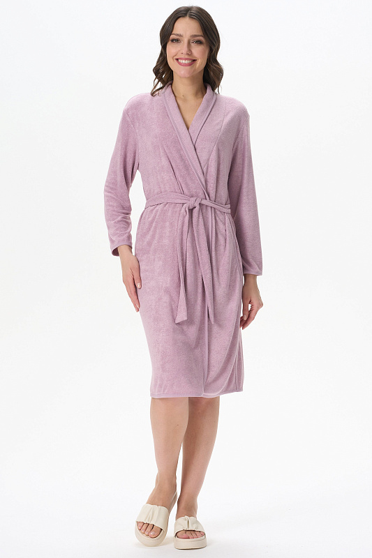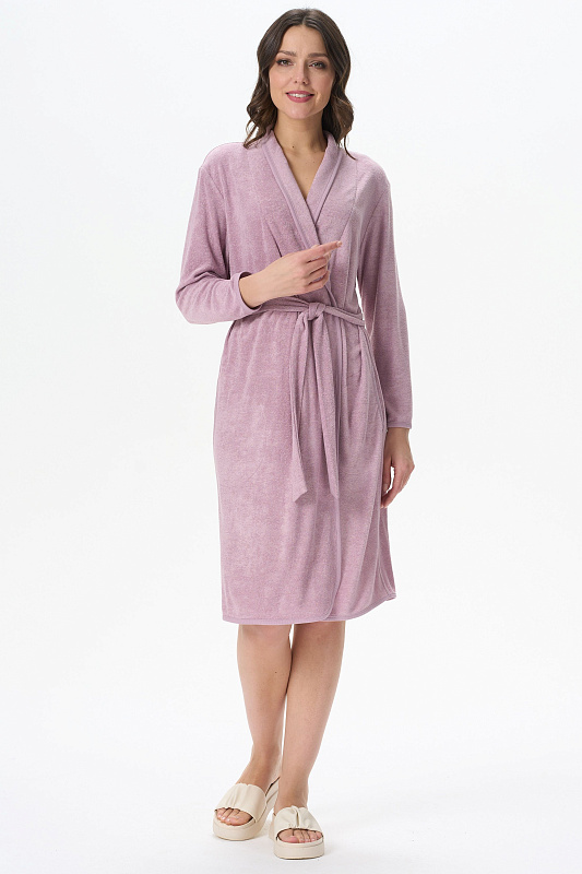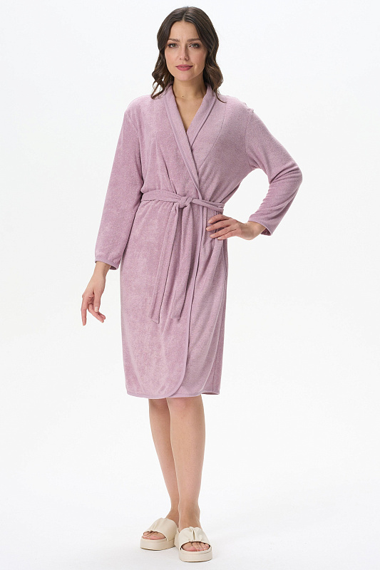 Комфортный халат с запахом из махрового вискозного трикотажного полотна. Без воротника, в боковых швах карманы, длинные рукава. Рост модели 170см.