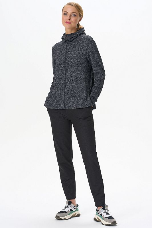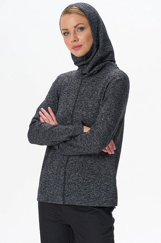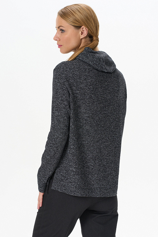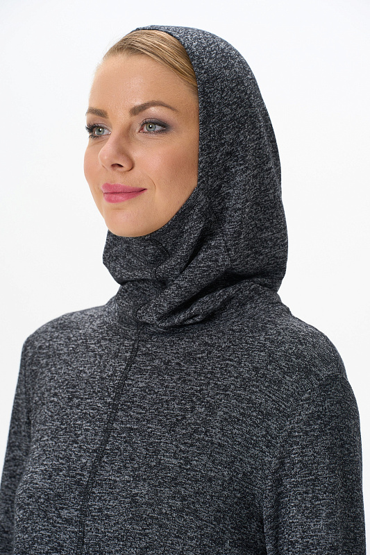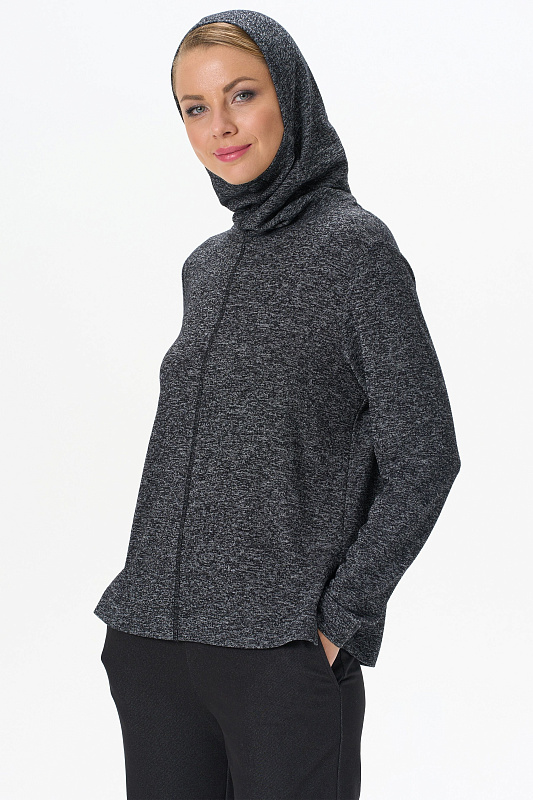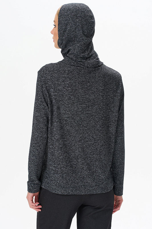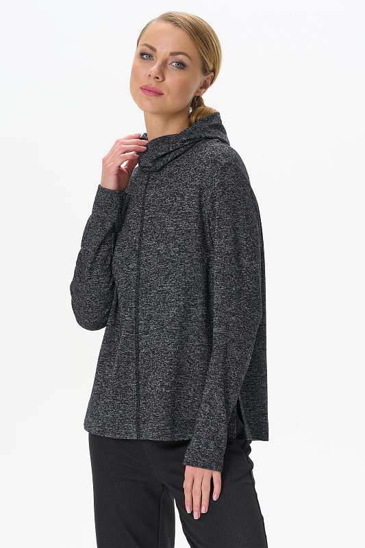 Теплый джемпер с капюшоном выполнен из вискозного полотна с начесом. Воротник-стойка, переходящий в капюшон, защитит вас в прохладную погоду. Длинные втачные рукава. По низу боковых швов разрезы. Рост модели на фото 178