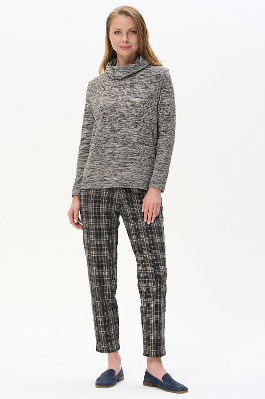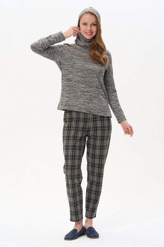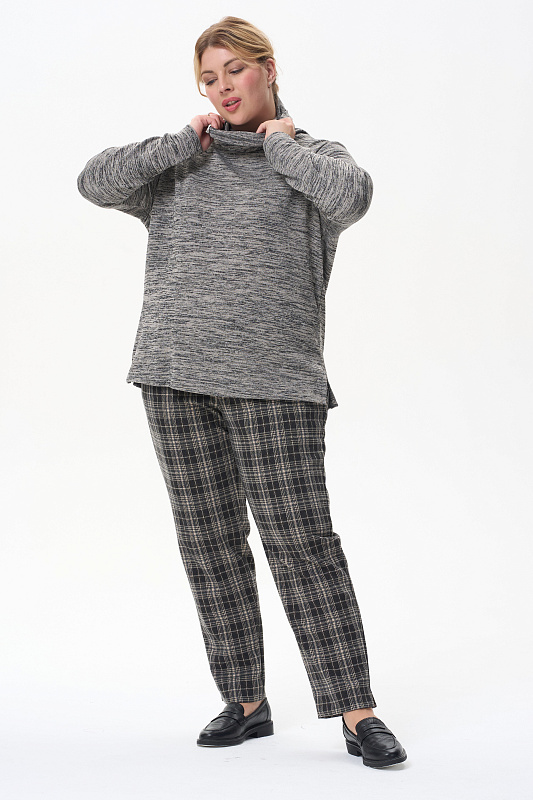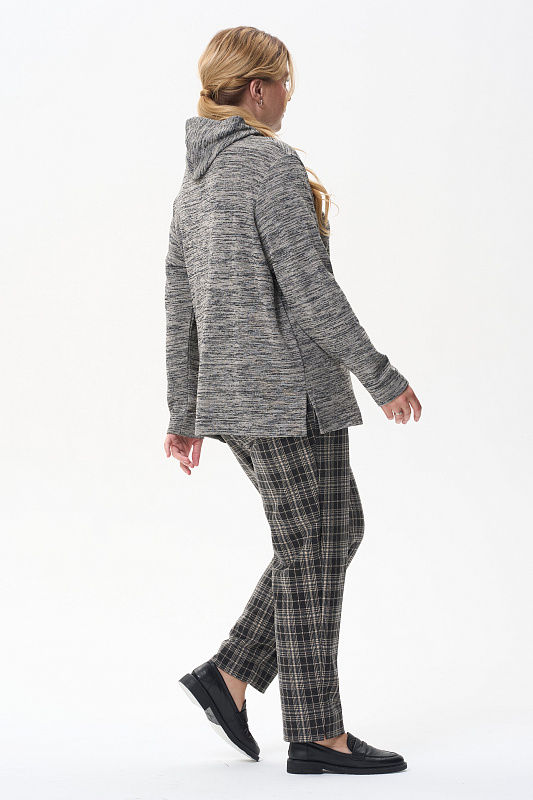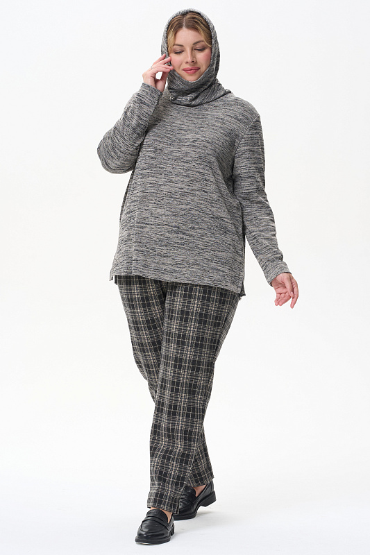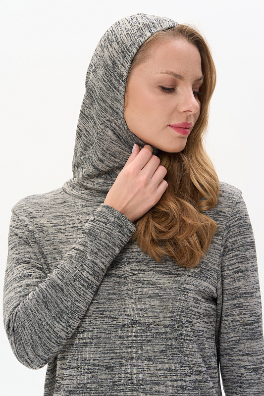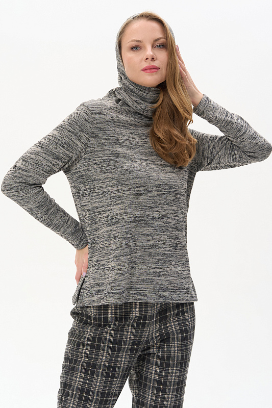 Теплый джемпер с капюшоном, выполнен из вискозного полотна с начесом. Воротник-стойка, переходящий в капюшон, защитит вас в прохладную погоду. Длинные втачные рукава. По низу боковых швов разрезы. Рост модели на фото 178см