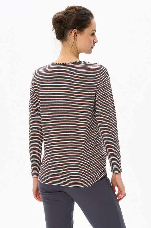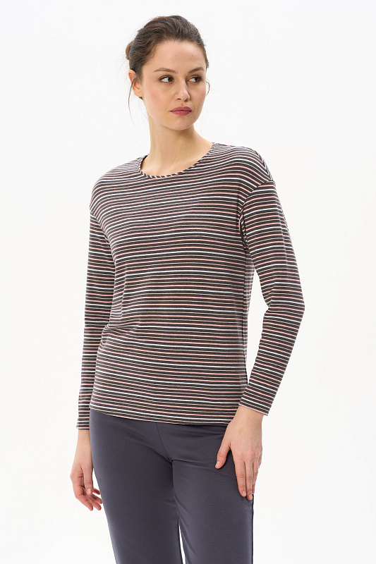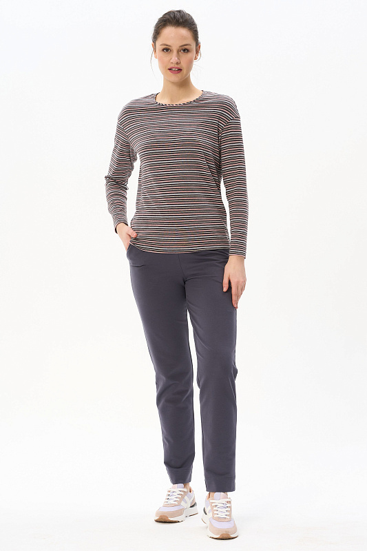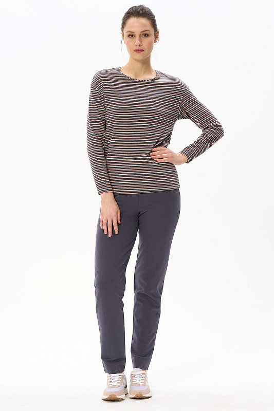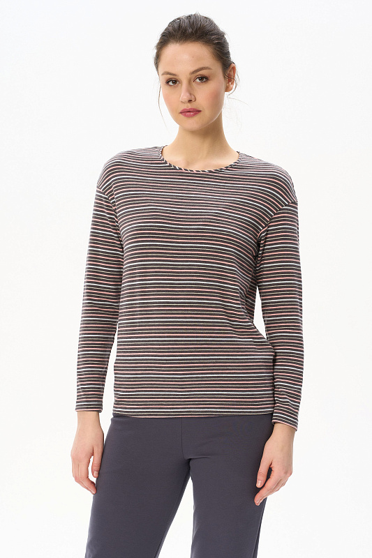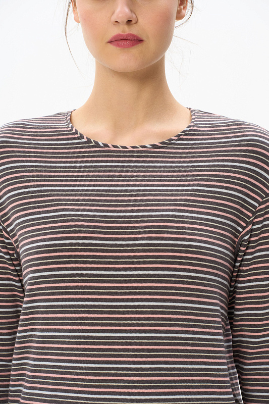 Легкий джемпер из хлопкового трикотажного полотна. Прямого силуэта с длинным рукавом и круглой формой горловины. Рост модели 178 см