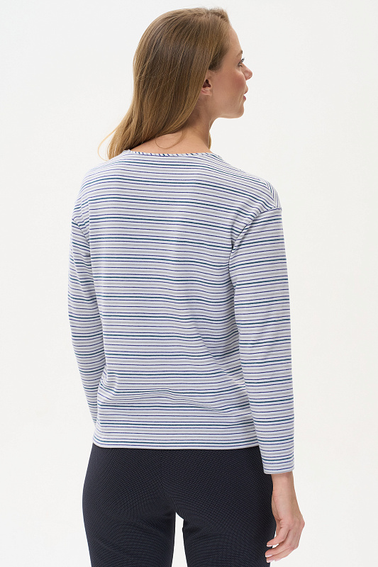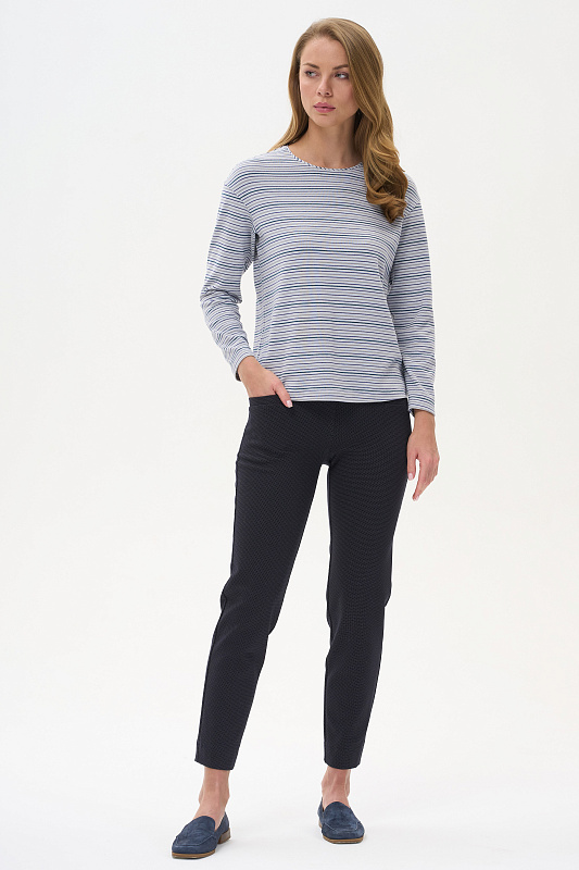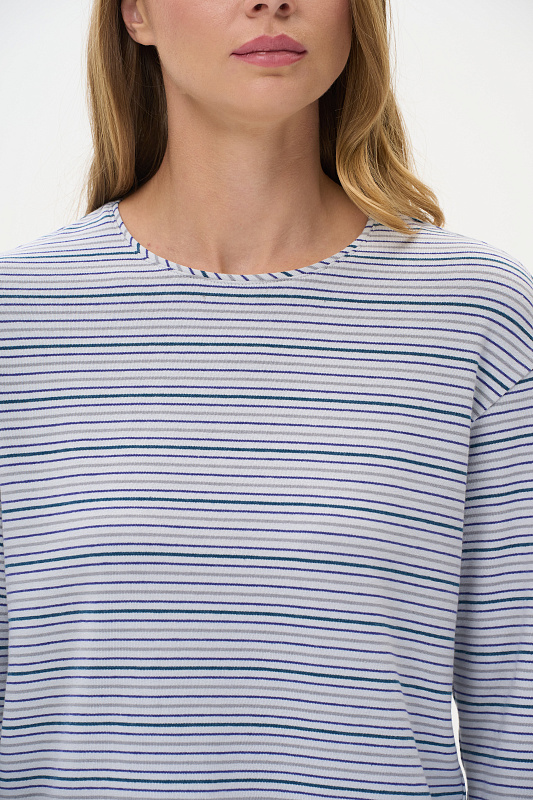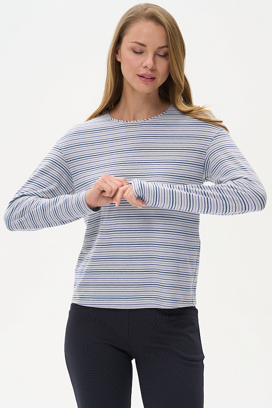 Джемпер с длинным рукавом из вязаного двустороннего полотна. Хлопковый состав с небольшим добавлением ПЭ даёт мягкость и ощущение теплоты. Тактильно очень приятное.