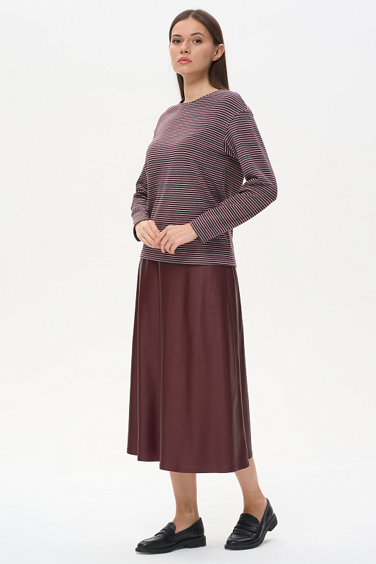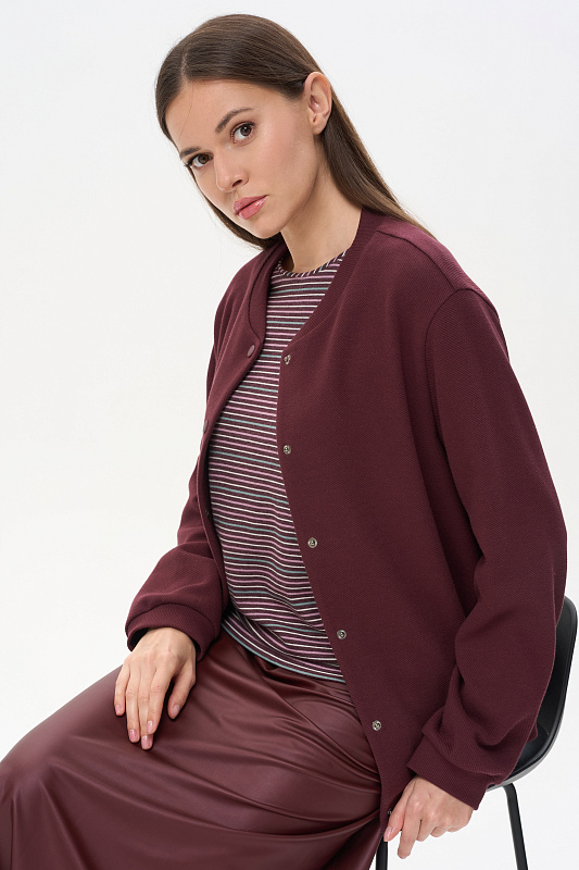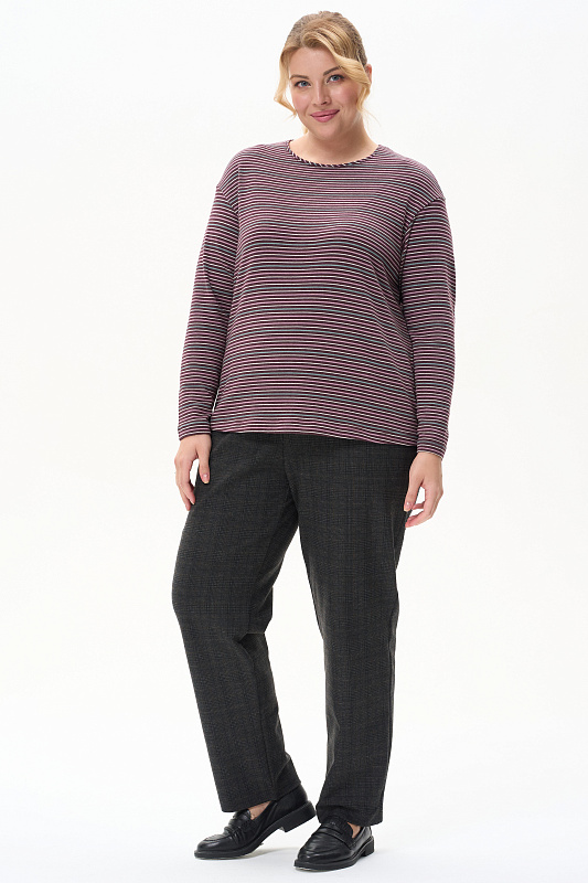 Джемпер с длинным рукавом из вязаного двустороннего полотна с легким начесом с изнаночной стороны. Хлопковый состав с небольшим добавлением ПЭ даёт мягкость и ощущение теплоты. Тактильно очень приятное полотно.