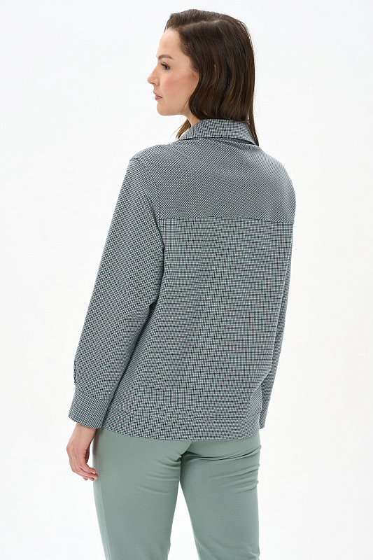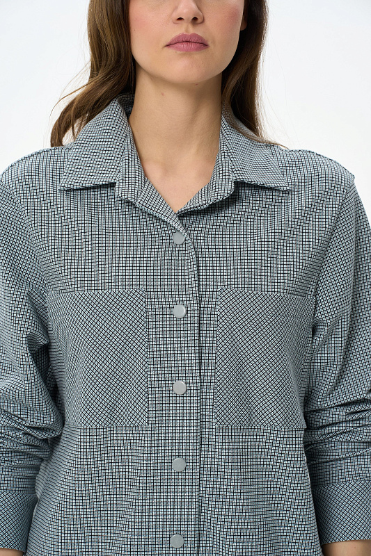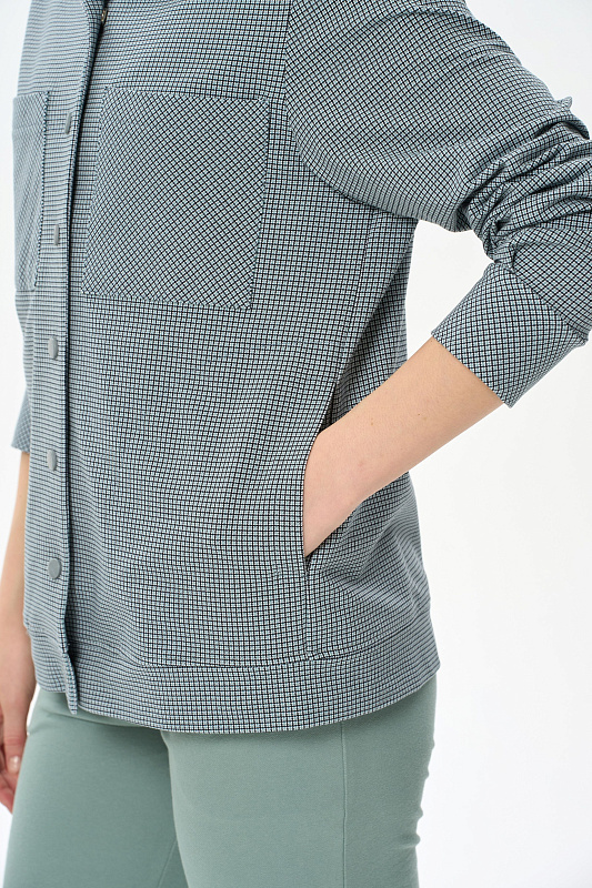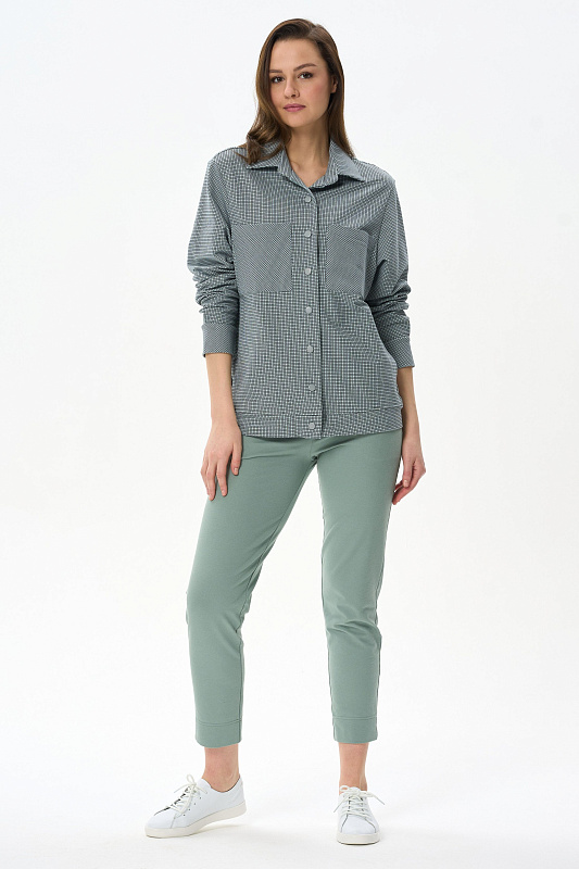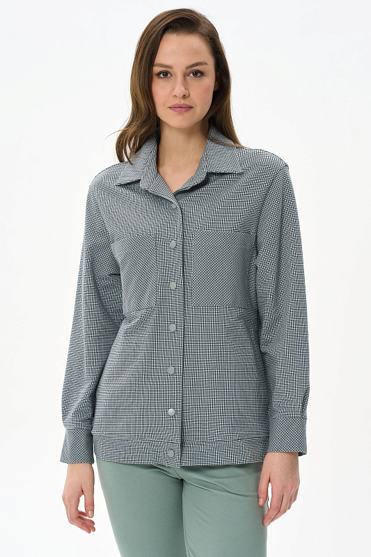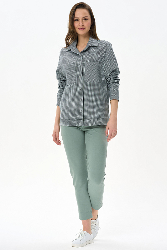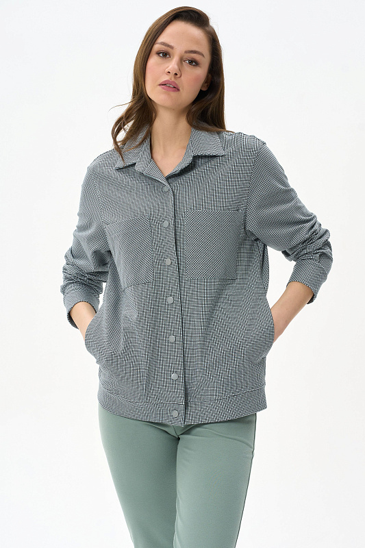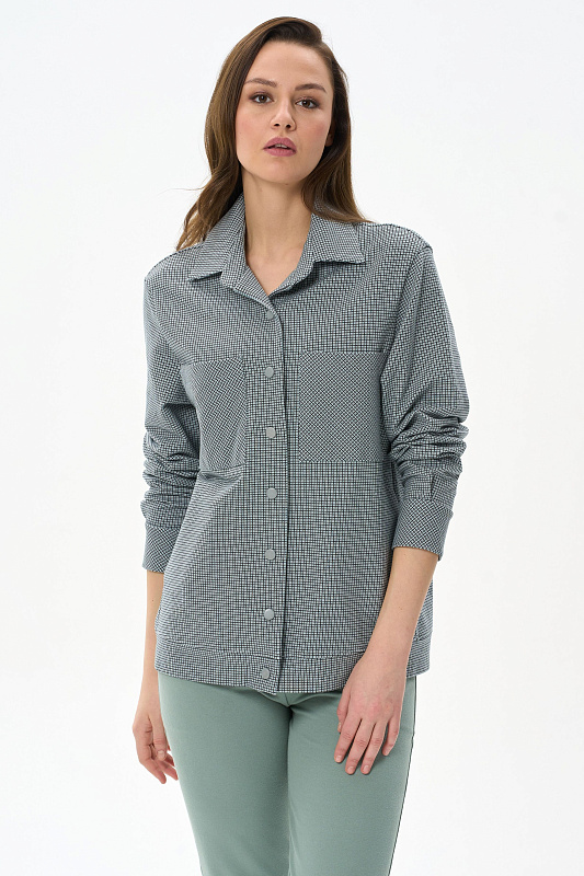 Куртка из хлопкового футера 2х нитки (без начеса) с эластаном, прямого силуэта. Отложной воротник, застежка на кнопки, карманы в боковых швах, длинные втачные рукава на притачных манжетах. Рост модели на фото 177см.
