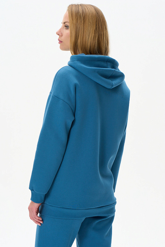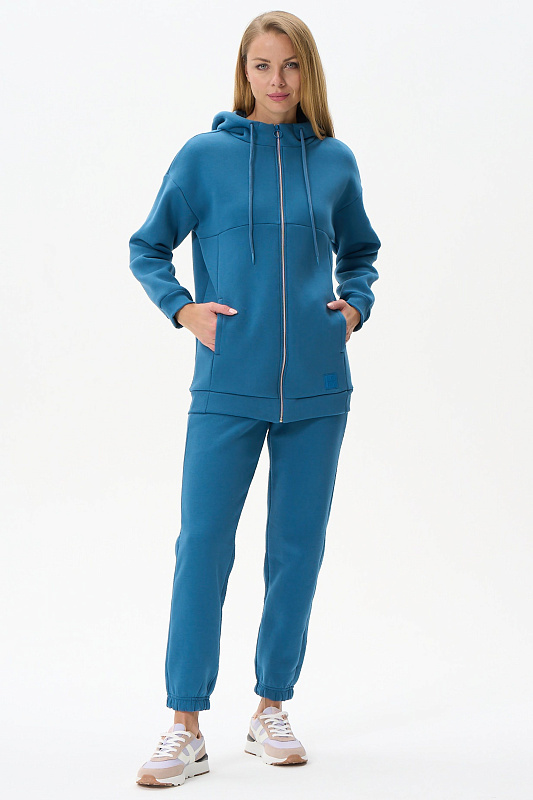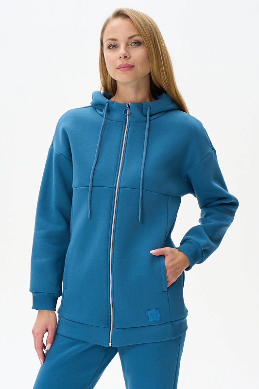 Утепленная куртка с капюшоном из хлопкового футера 3-х нитки с начесом, на молнии. В рельефных швах карманы, по низу рукавов манжеты. Рост модели на фото 177
