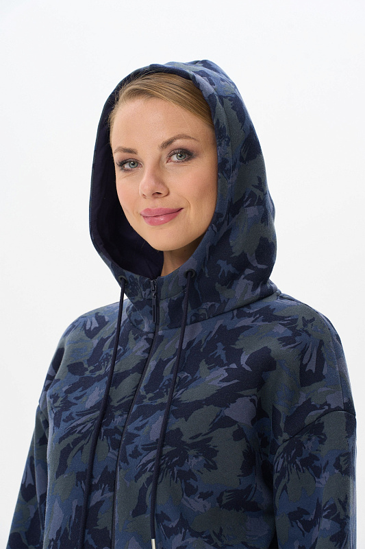 Утепленная куртка с капюшоном, из хлопкового футера высокого качества 3-х нитки стриженный начес, на молнии. В рельефных швах карманы, спущенная линия плеча, втачные длинные рукава с притачными манжетами. Капюшон на подкладке. По низу куртки притачной пояс. Манжеты и пояс выполнены из хлопкового полотна кашкорсе. Рост модели на фото 177