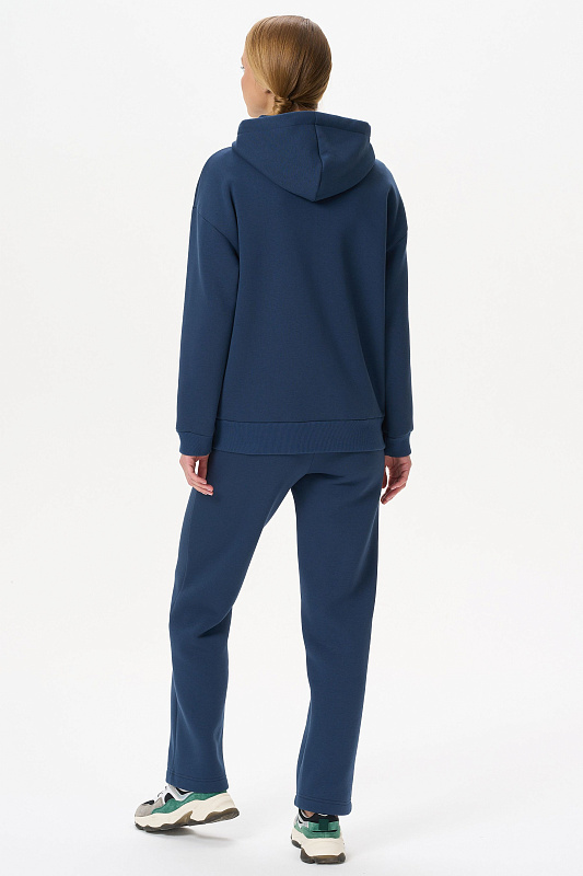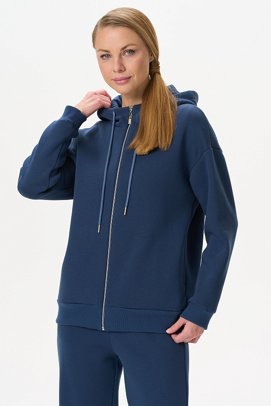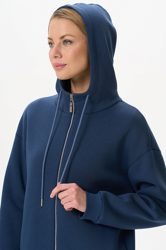 Утепленная куртка с капюшоном, из хлопкового футера высокого качества 3-х нитки стриженный начес, на молнии. В рельефных швах карманы, спущенная линия плеча, втачные длинные рукава с притачными манжетами. Капюшон на подкладке. По низу куртки притачной пояс. Манжеты и пояс выполнены из хлопкового полотна кашкорсе. Рост модели на фото 177