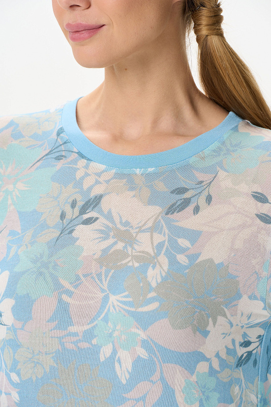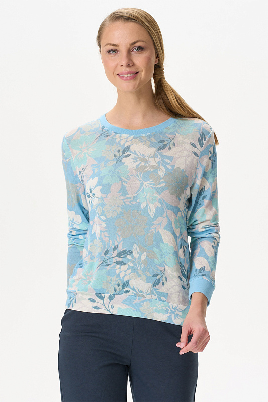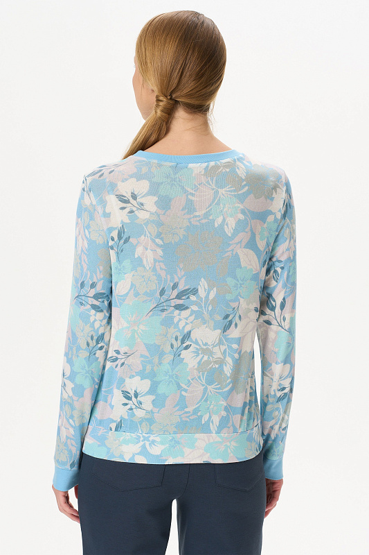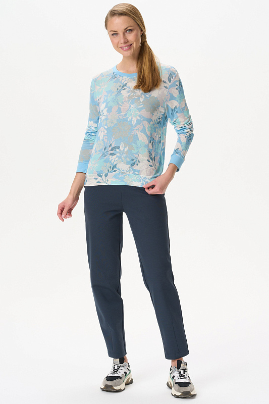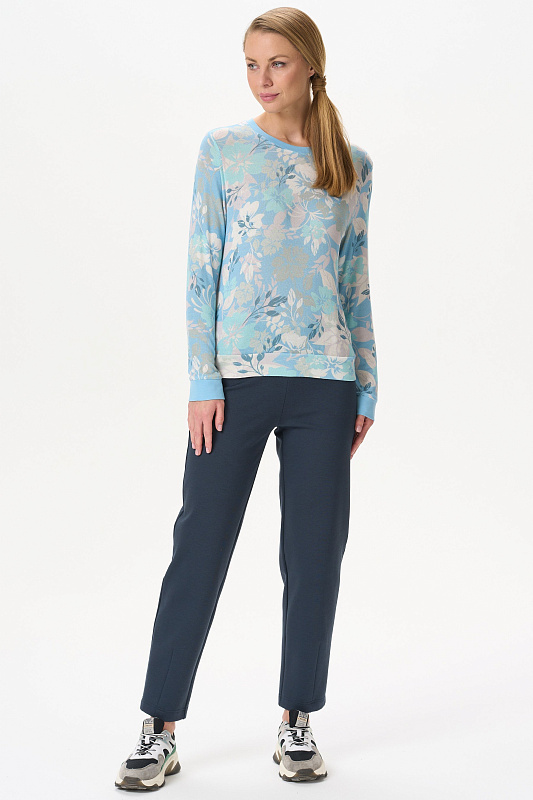 Комфортный джемпер из вискозного полотна. Круглый вырез горловины, втачные длинные рукава. Манжеты на рукавах и вырез горловины выполнены из вискозной рибаны. Рост модели на фото 177.