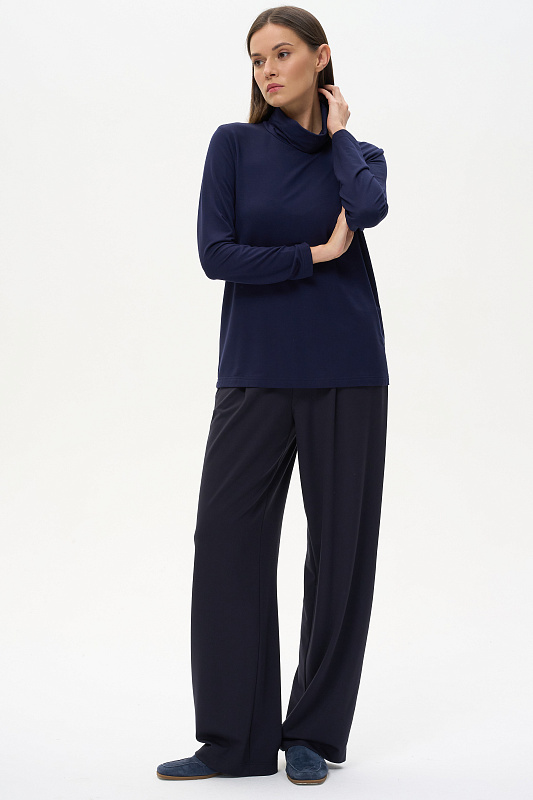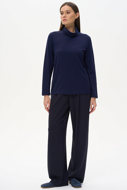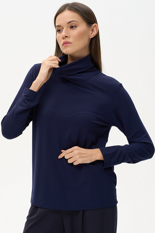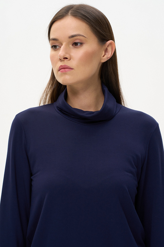 Комфортная водолазка из вискозного трикотажного полотна. Легкий воротник стойка, длинные втачные рукава. Рост модели на фото 178 cм.