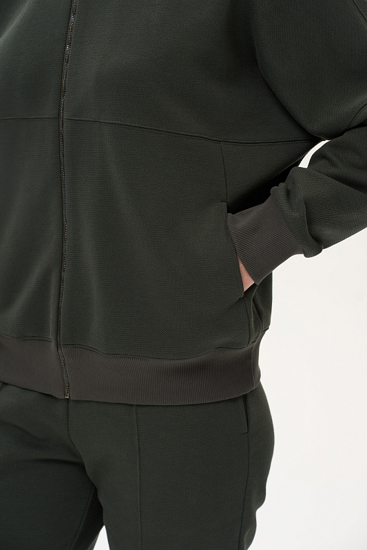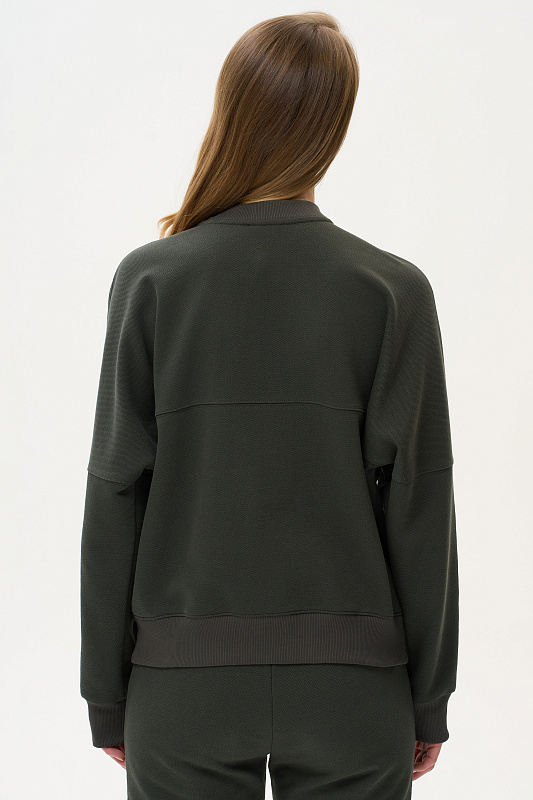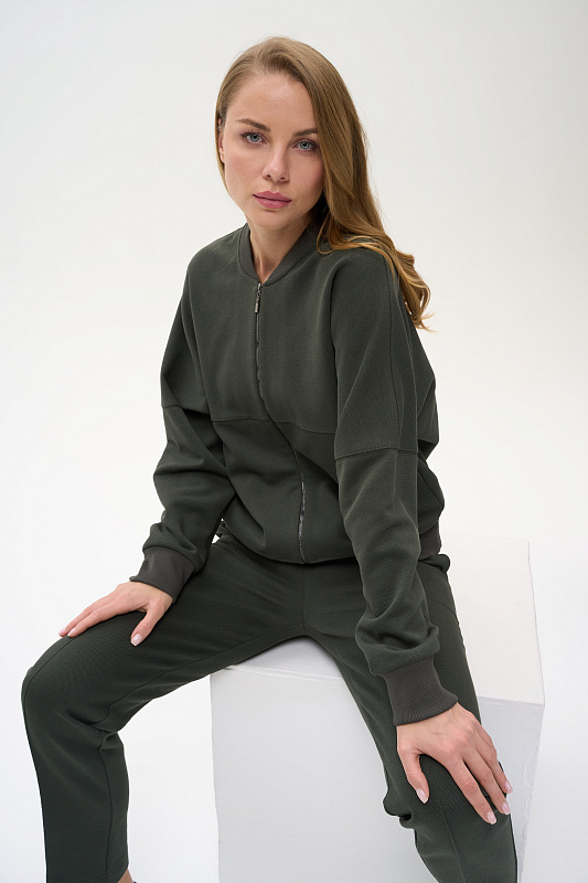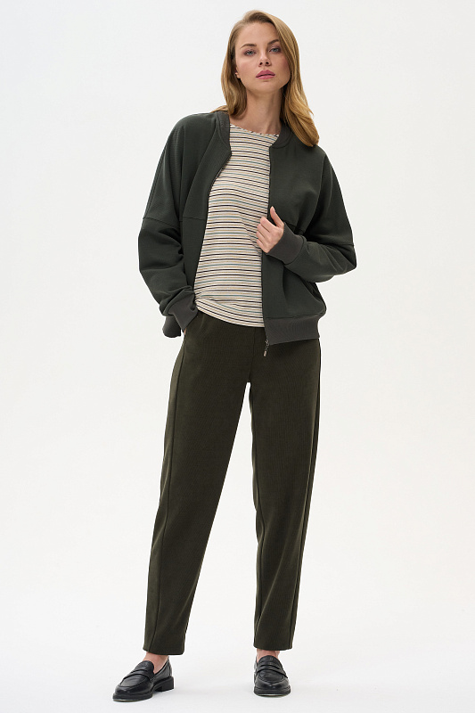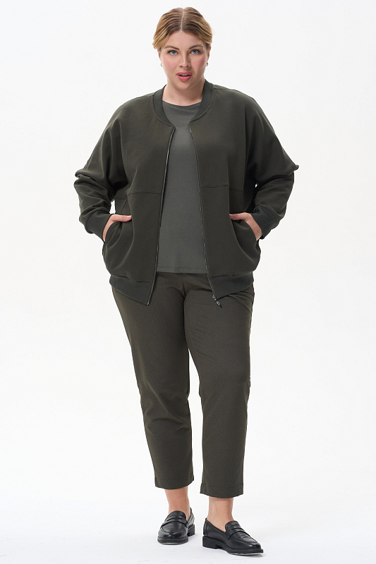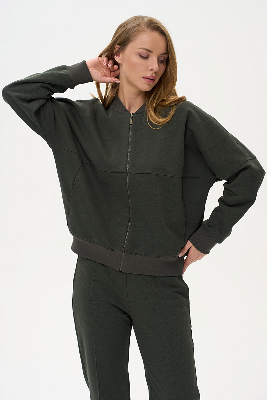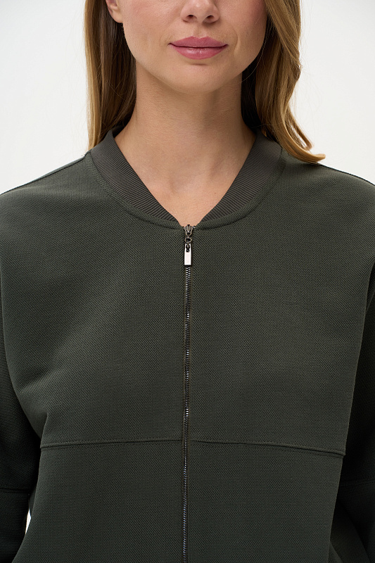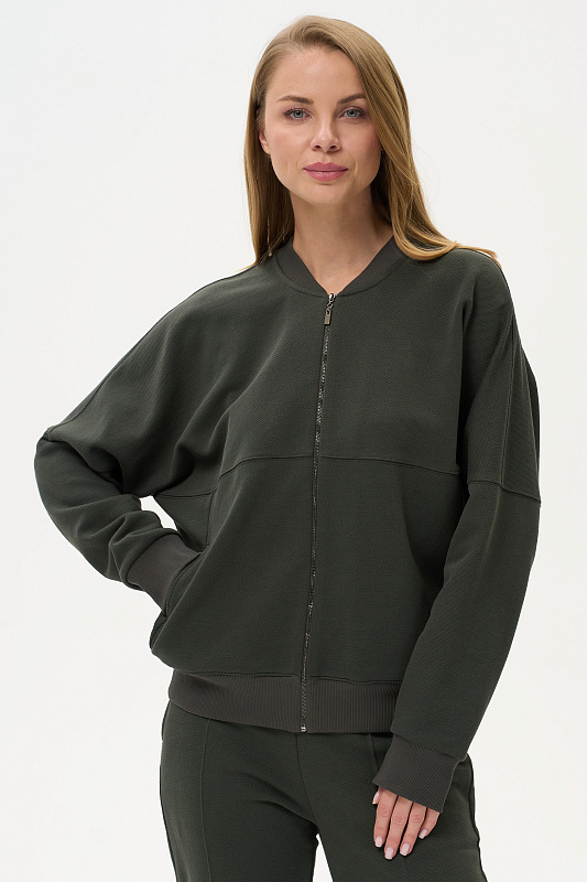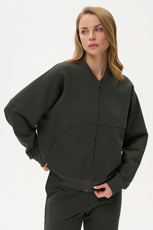 Стильная куртка-бомбер из футера с начесом, свободного силуэта, с металлической молнией.