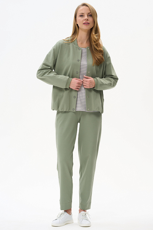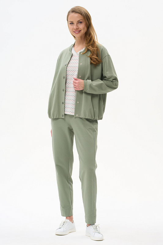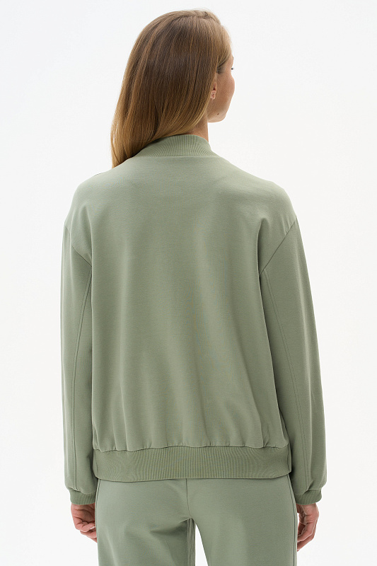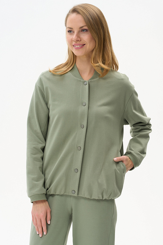 Модная куртка-бомбер из футера. Воротник и манжеты из мягкого кашкорсе. Глубокие и удобные карманы.