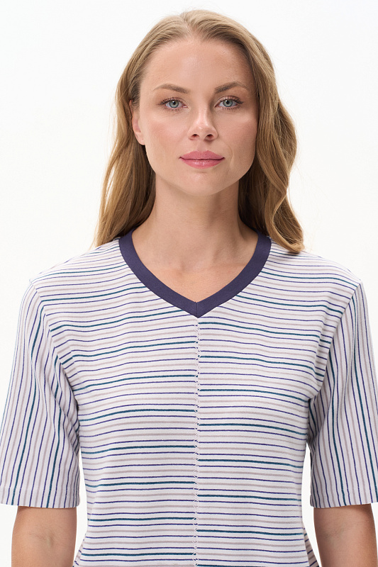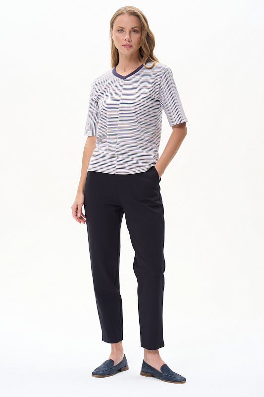 Джемпер с коротким рукавом из вязаного плотного двустороннего полотна. Хлопковый состав с небольшим добавлением ПЭ даёт мягкость и ощущение теплоты. Тактильно очень приятное.