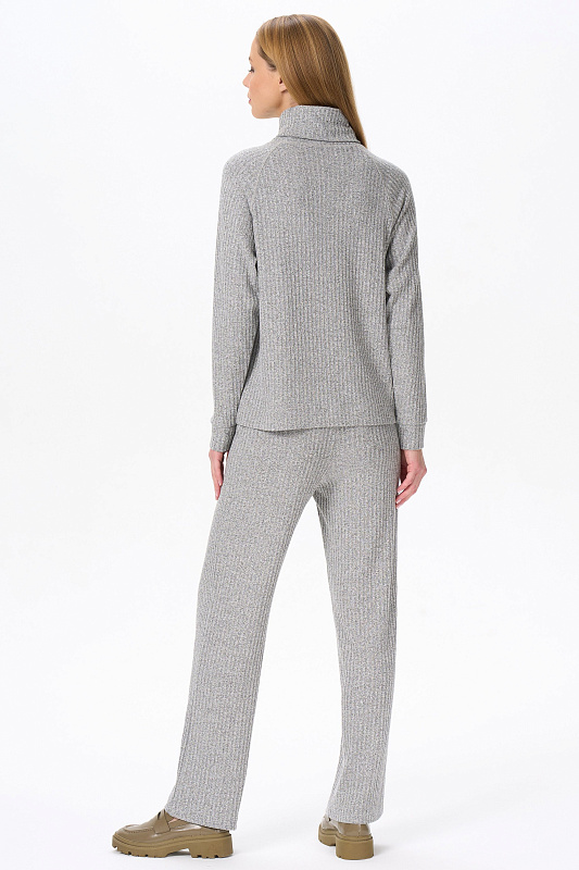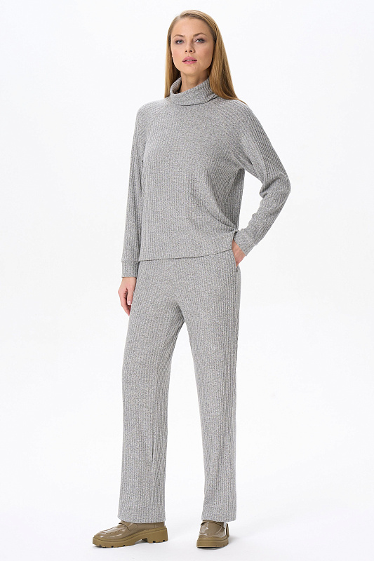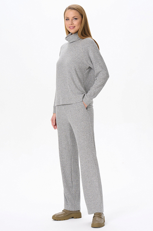 Уютный комплект из вязанного вискозного полотна. Джемпер с мягким воротником стойкой и длинными рукавами. Прямые брюки с карманами, на поясе с эластичной тесьмой внутри. Рост модели на фото 177.