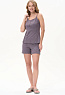 Комплект выполнен из хлопкового меланжевого полотна. Майка с круглым вырезом горловины. Спереди подрез и средний шов декорирован мережкой. Шорты без карманов, пояс с эластичной лентой внутри. Боковые швы шорт декорированы мережкой. Рост модели на фото 178см.