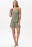 Комплект выполнен из хлопкового меланжевого полотна. Майка с круглым вырезом горловины. Спереди подрез и средний шов декорирован мережкой. Шорты без карманов, пояс с эластичной лентой внутри. Боковые швы шорт декорированы мережкой. Рост модели на фото 178см.