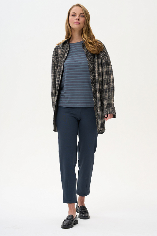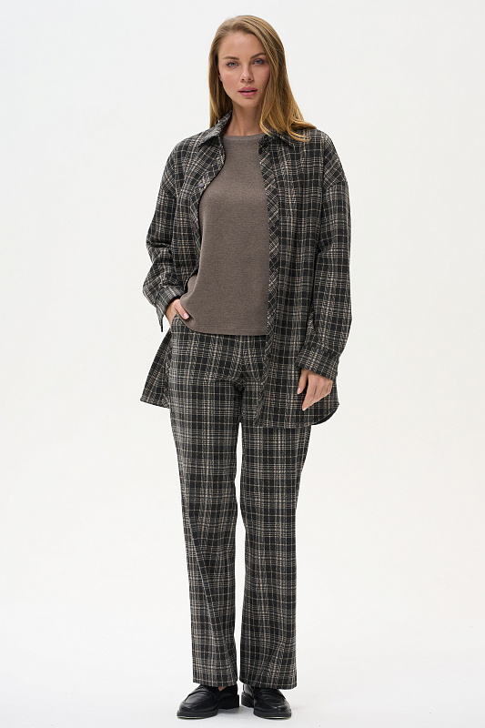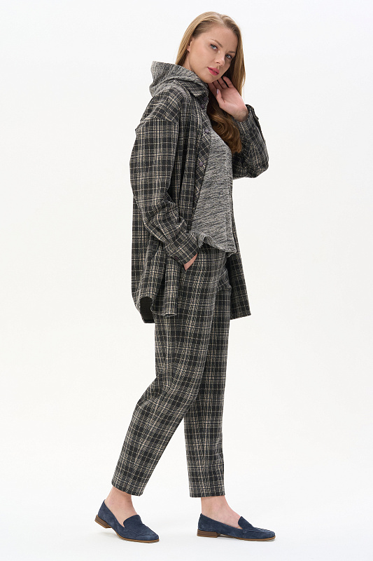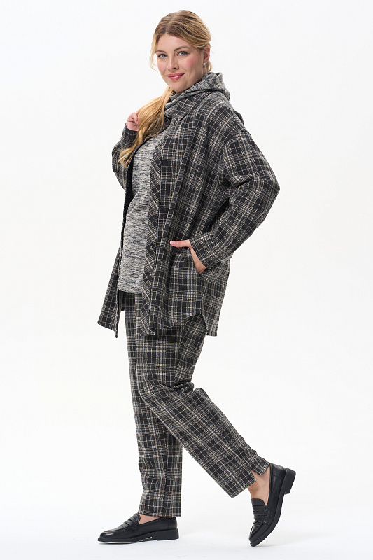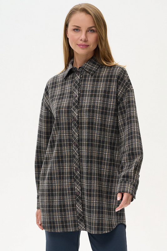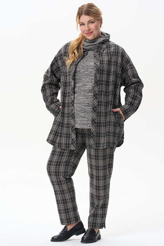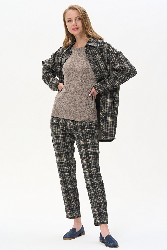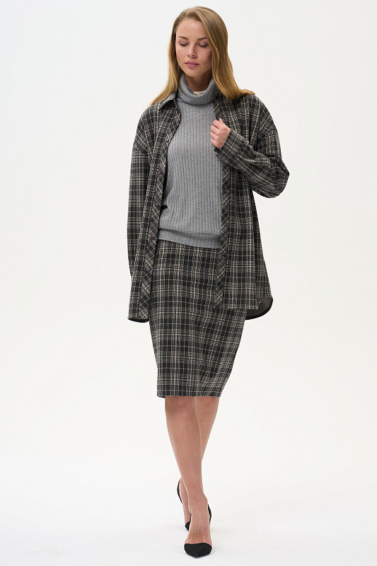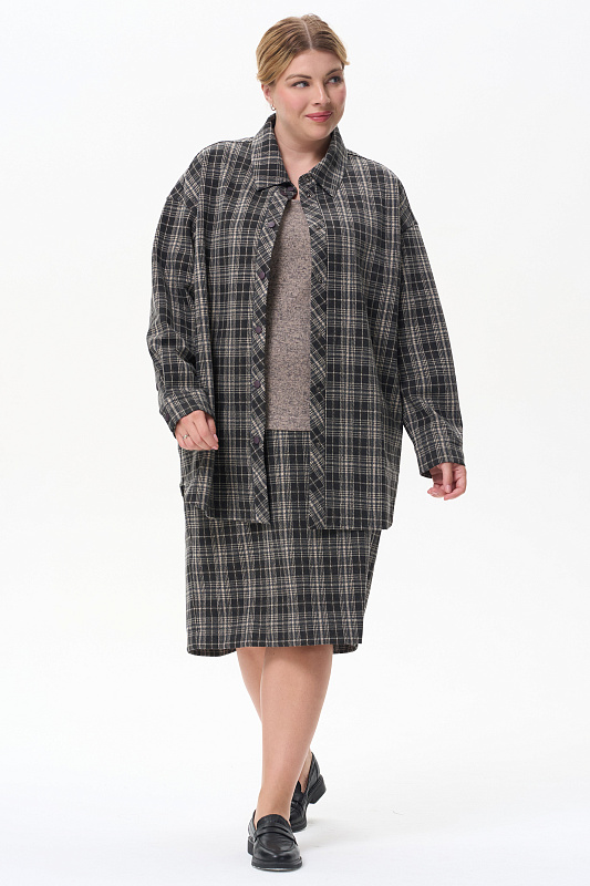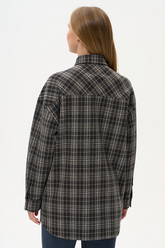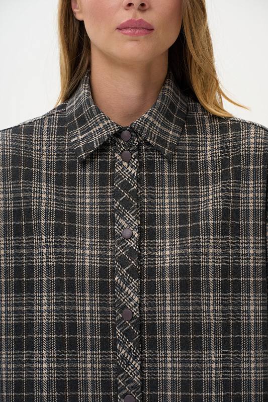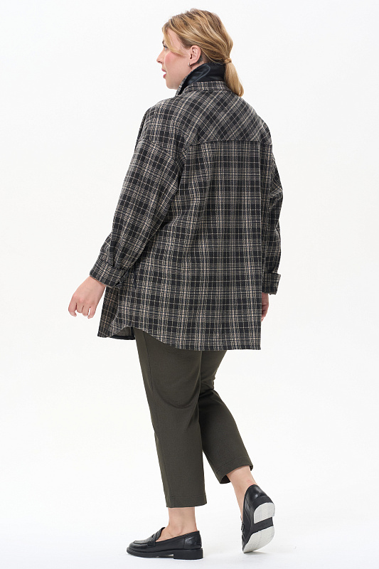 Жакет-рубашка на кнопках из плотного жаккардового полотна. Ракава на манжетах, Отделка на карманах и планка, с внутренней стороны выполнены из экокожи.