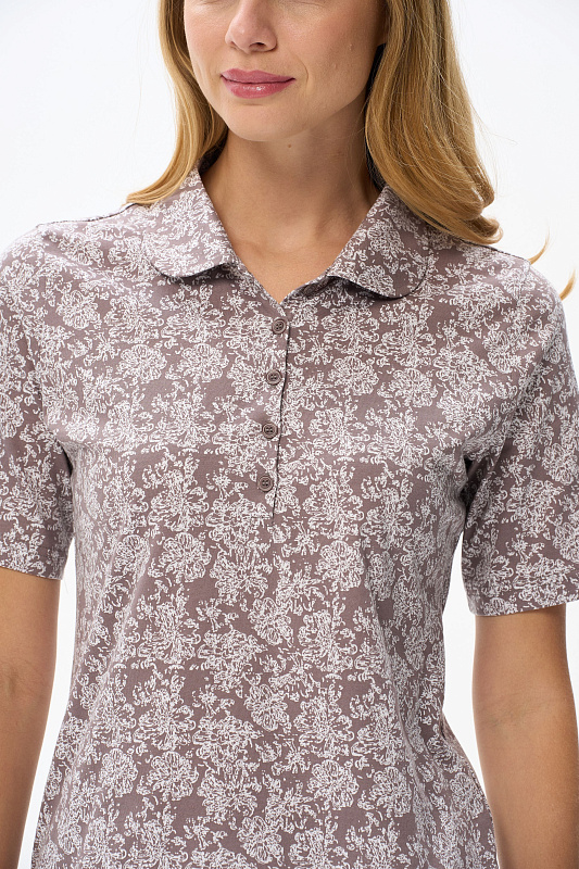 Джемпер-поло из кулирки качества ПЕ 150 гр. Модель свободная, прямого силуэта, с классическим оформлением горловины - воротник-поло и застежка на пуговицы, рукава короткие, по бокам разрезы. Лёгкий, комфортный, универсальный джемпер для офиса и отдыха. Рост модели 175 см.