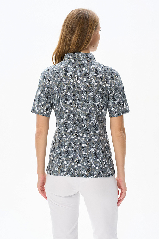 Джемпер-поло из кулирки качества ПЕ 150 гр. Модель свободная, прямого силуэта, с классическим оформлением горловины - воротник-поло и застежка на пуговицы, рукава короткие, по бокам разрезы. Лёгкий, комфортный, универсальный джемпер для офиса и отдыха. Рост модели 175 см.