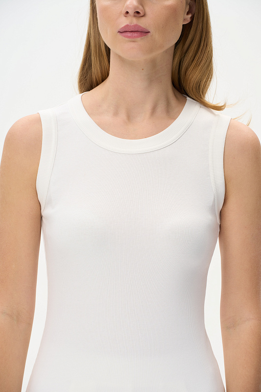 Базовая майка из мягкого кашкорсе качества пенье 240 гр красивого Молочного оттенка. Актуальная модель с широкой окантовкой. Сочетание майки с другими моделями коллекции в том же оттенке, позволяет создавать трендовые монохромные образы. Рост модели 175 см.