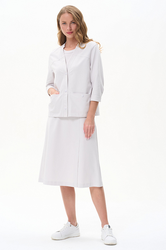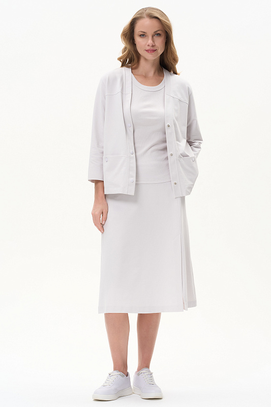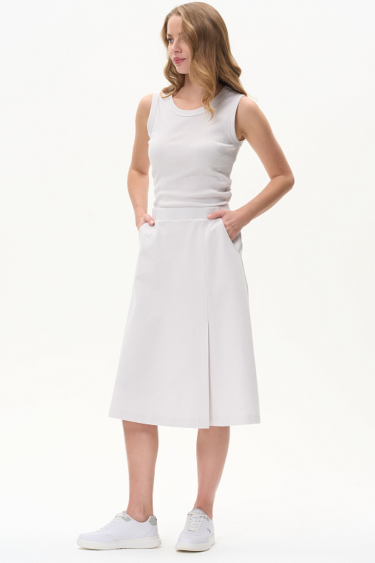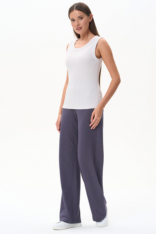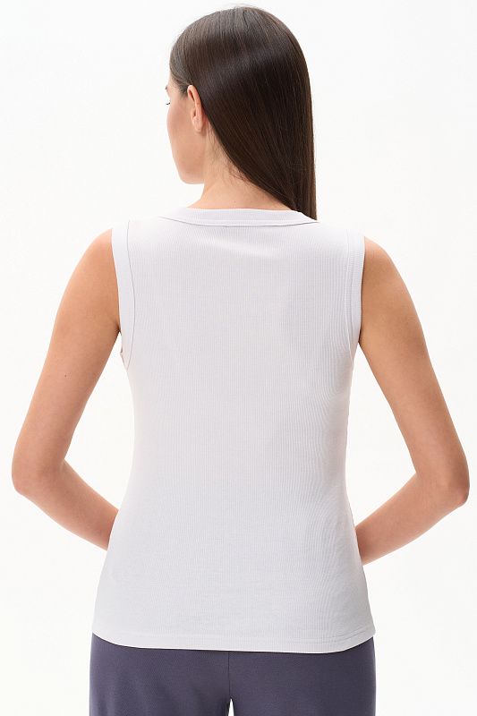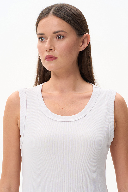 Базовая майка из мягкого кашкорсе качества пенье красивого Жемчужного оттенка. Актуальная модель с широкой окантовкой. Сочетание майки с другими моделями коллекции в том же оттенке, позволяет создавать трендовые монохромные образы. Рост модели 175 см