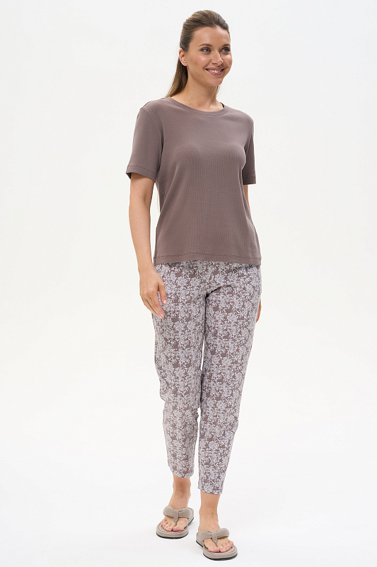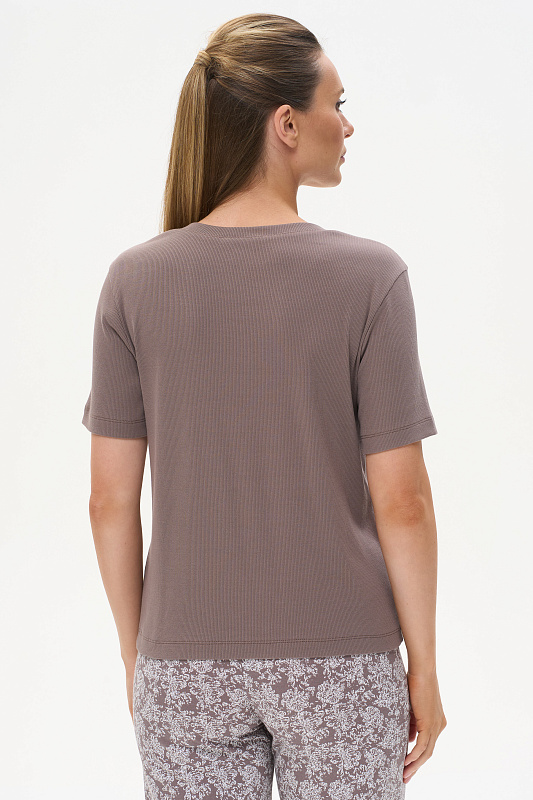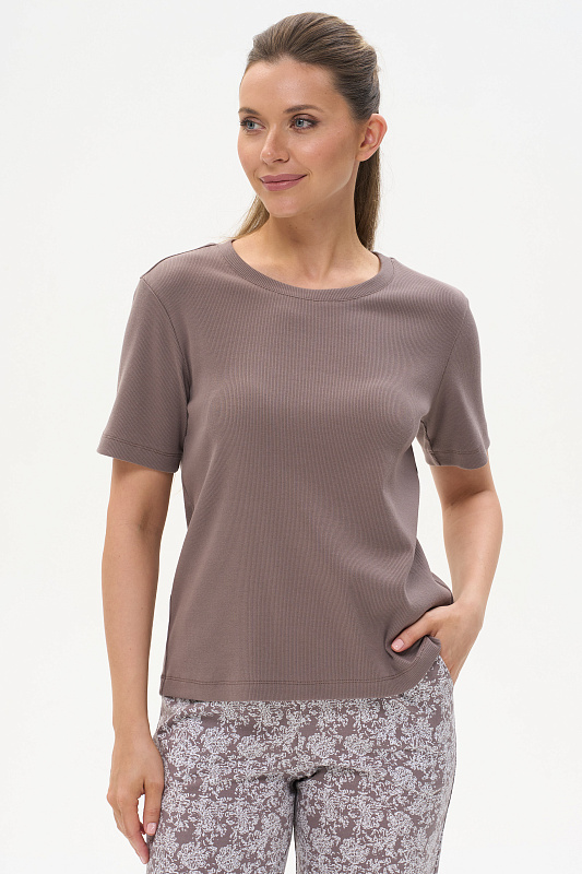 Стильная футболка прямого силуэта, выполнена из хлопкового трикотажного полотна с эластаном - кашкорсе. Круглый вырез горловины, втачные короткие рукава. Рост модели на фото 178см.