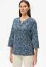 Блузка прямого силуэта из хлопкового трикотажного полотна. Круглый вырез горловины с планкой-застежкой на четыре пуговицы. Рукава длиной 3/4. Рост модели на фото 178 см.